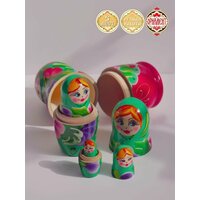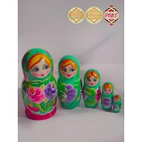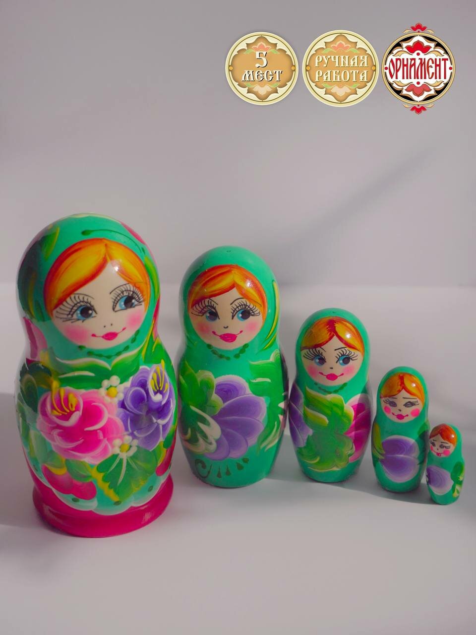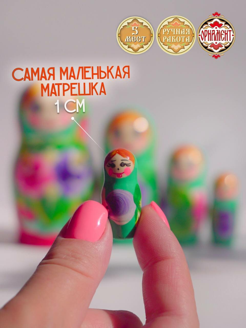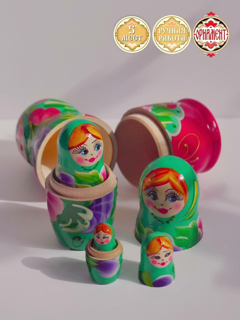 Купить Матрешка деревянная детская хохлома развивающая игрушка традиционная 5 мест 10 см Орнамент с доставкой по всей России.