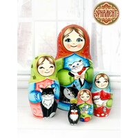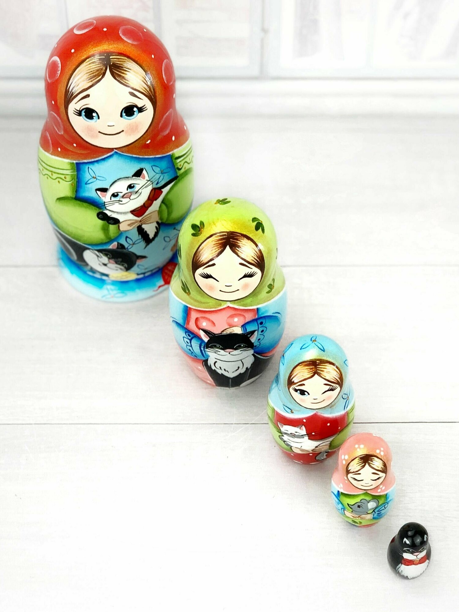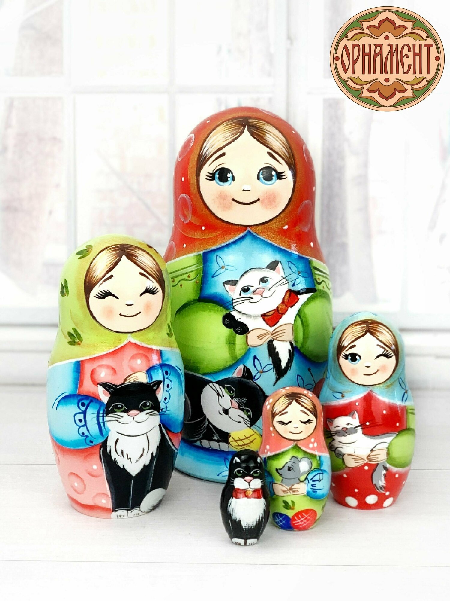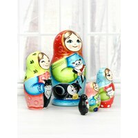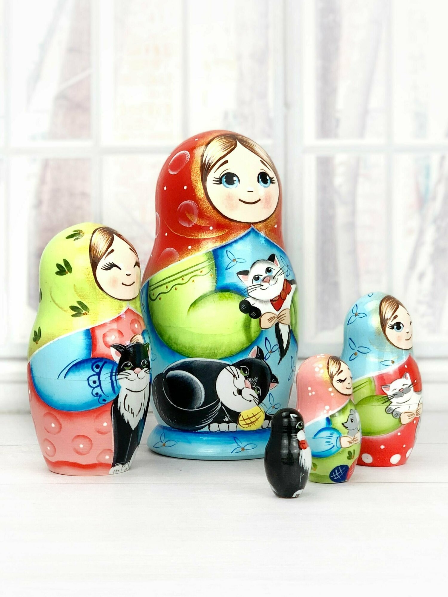 Матрешка "Черный кот". Очень хорошего качества, красивое открытое лицо, качественная яркая роспись. Каждая матрешка с разным выражением лица. Матрешка изготовлена из хорошо просушенного дерева и покрыта трехслойным глянцевым лаком. Послужит отличным подарком в русском стилем стиле.