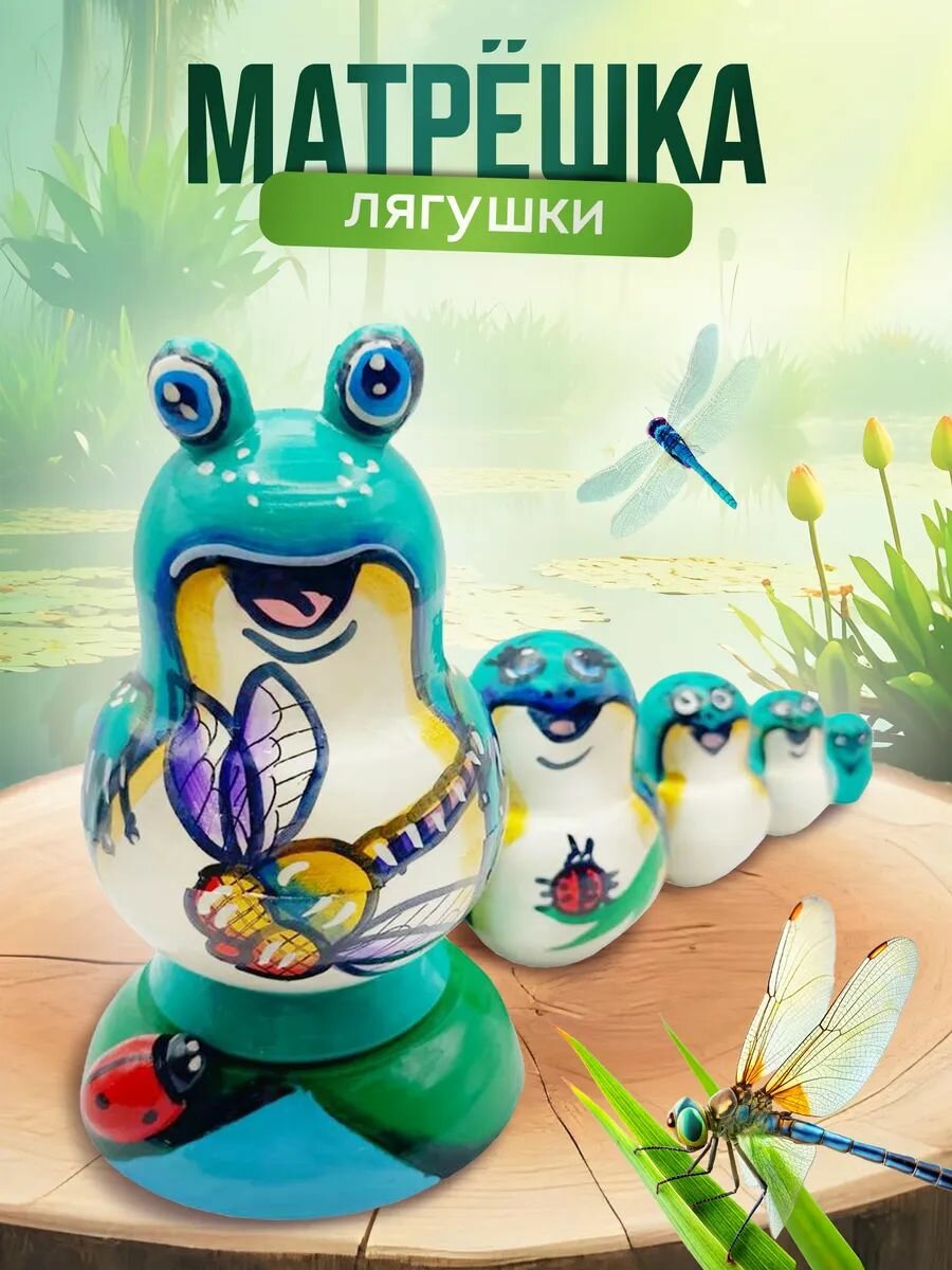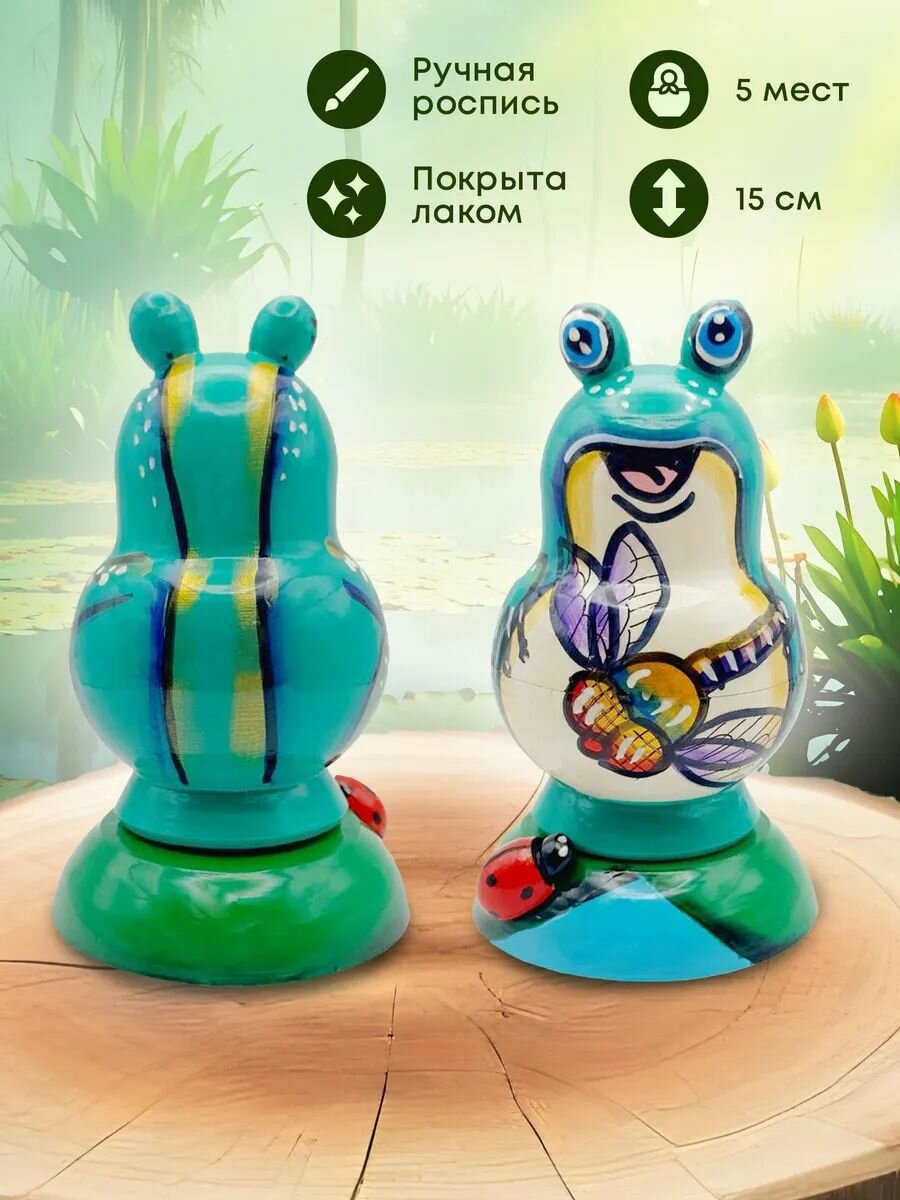 Купить Матрешка деревянная детская развивающая игрушка для детей сортер Лягушки 5 мест 15 см Орнамент с доставкой по всей России.