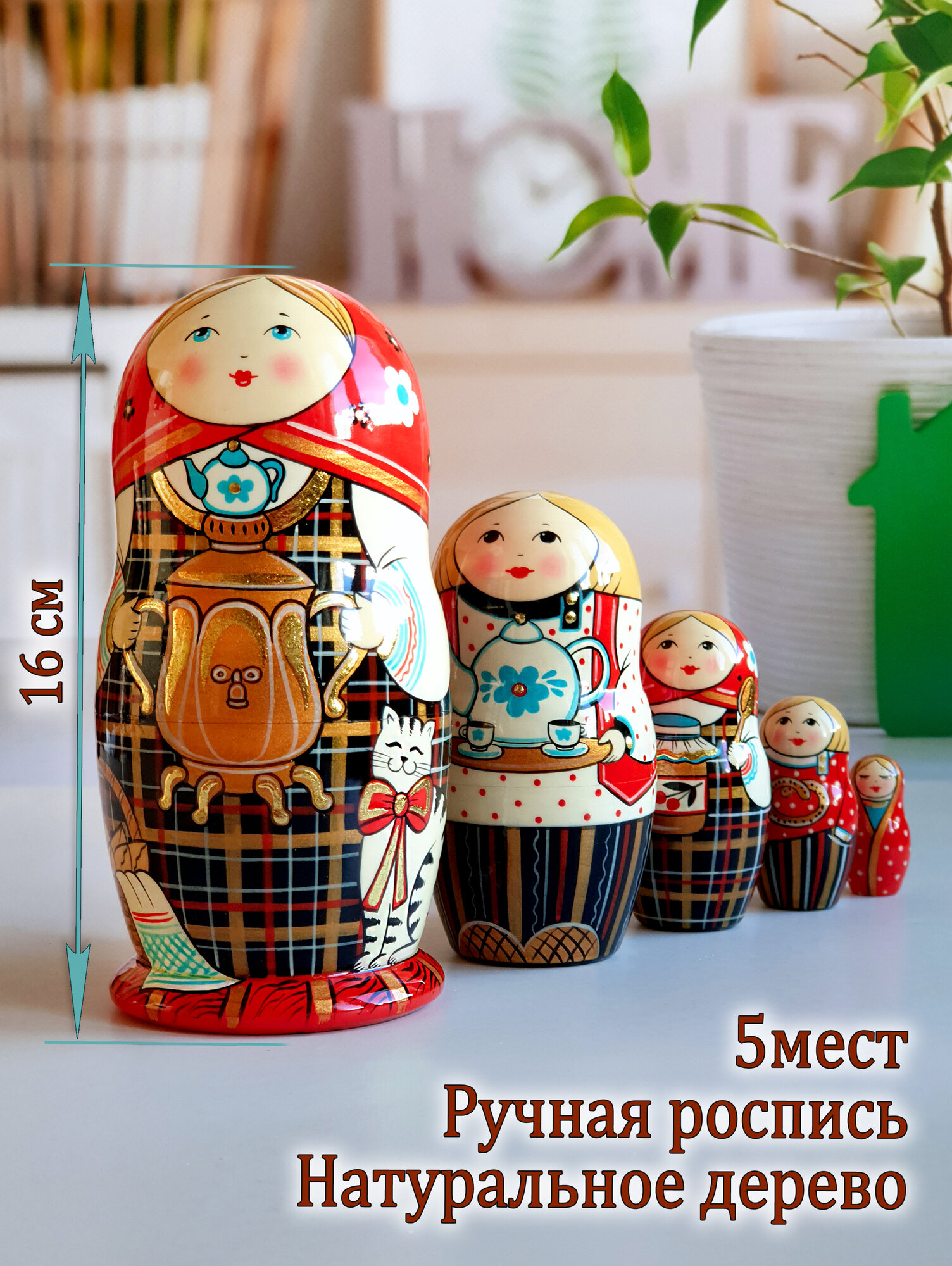 Купить Матрешка деревянная детская развивающая игрушка Самовар 5 мест 15 см Орнамент с доставкой по всей России.