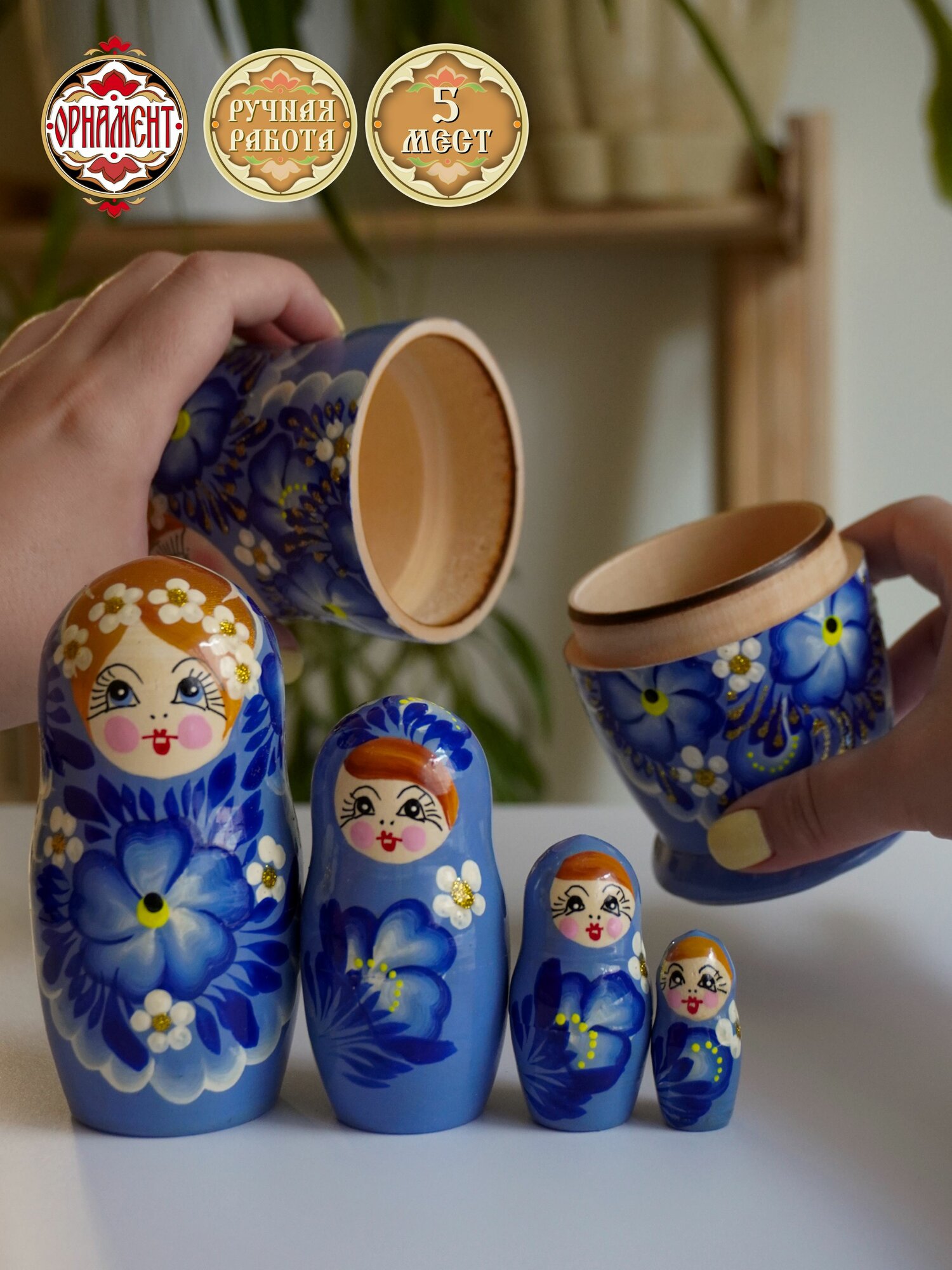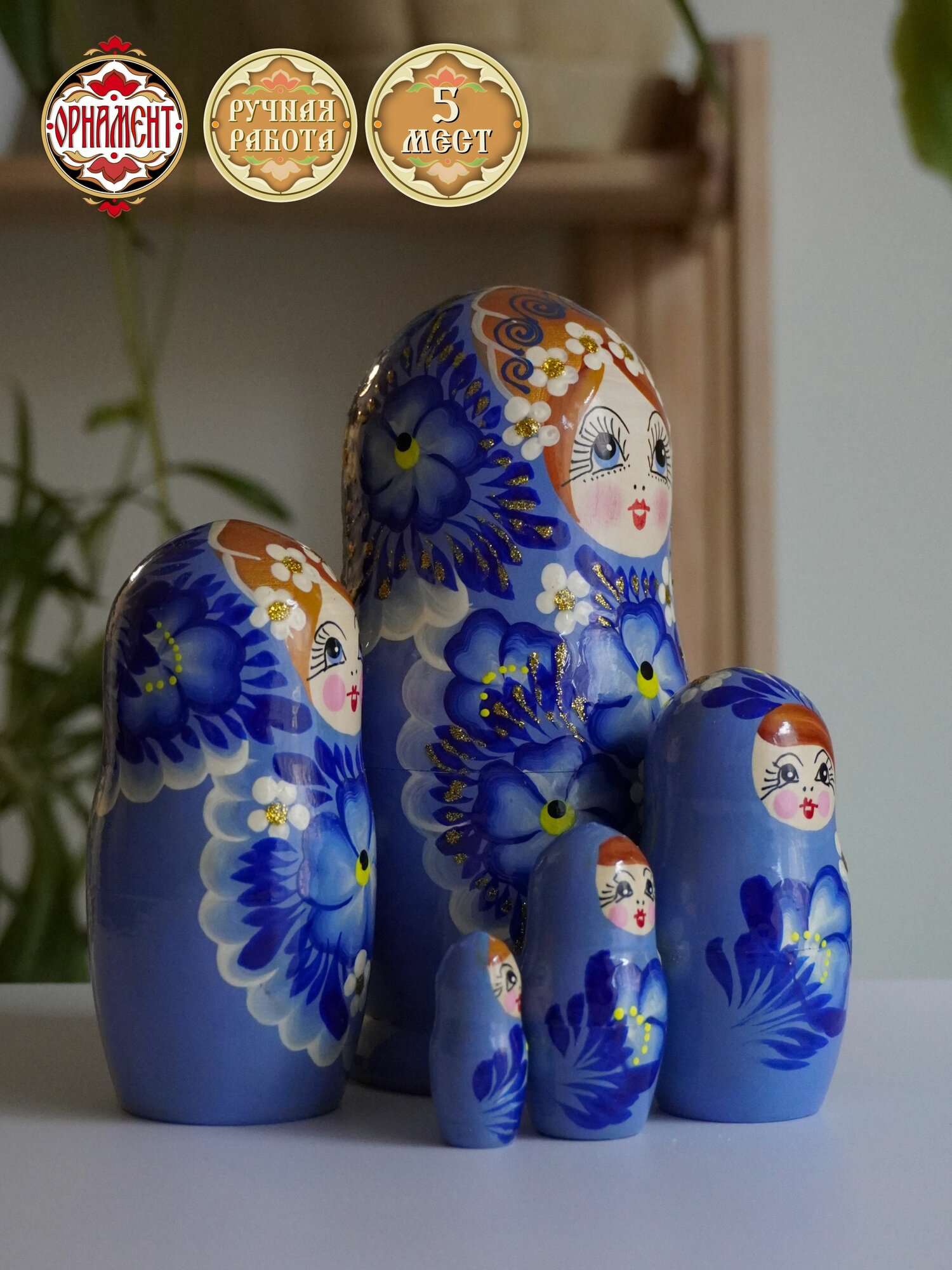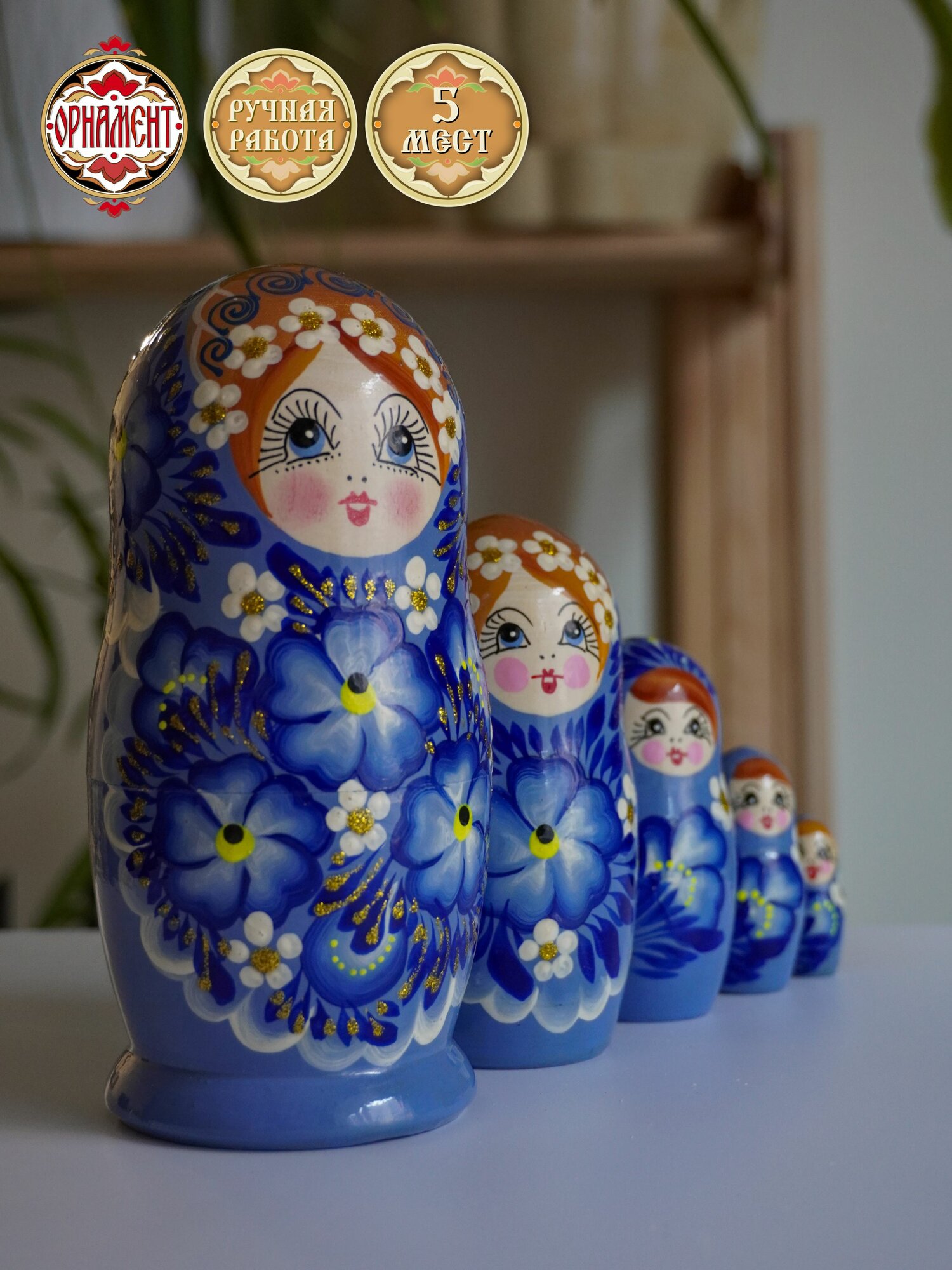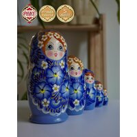 Матрешка расписана вручную в традиционном стиле. Яркая расцветка, милое личико и красивые цветы. Покрыта глянцевым лаком. Высота первой, самой большой матрешки - 15 см. Матрёшки ручной работы, поэтому могут быть незначительные изменения. Русский сувенир в подарок. br/>
