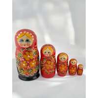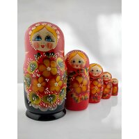 Матрешка расписана вручную в традиционном стиле. Яркая расцветка, милое личико и красивые цветы. Покрыта глянцевым лаком. Высота первой, самой большой матрешки - 20 см. Матрёшки ручной работы, поэтому могут быть незначительные изменения. Русский сувенир в подарок. br/>