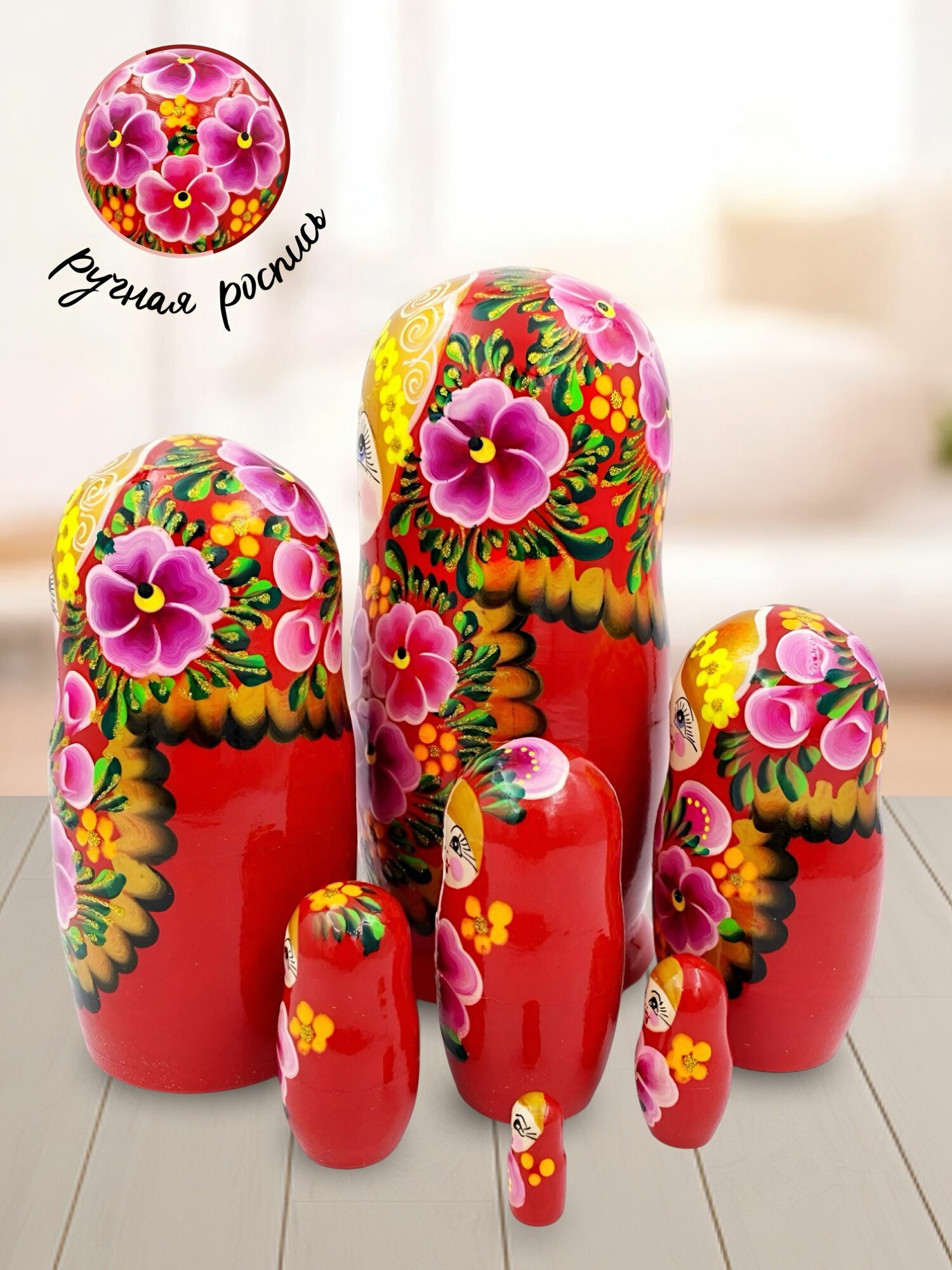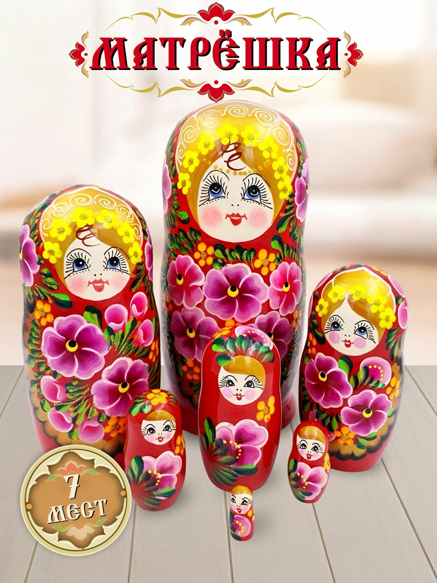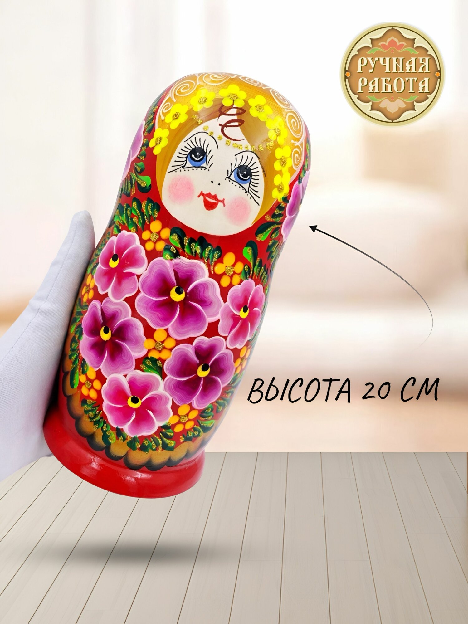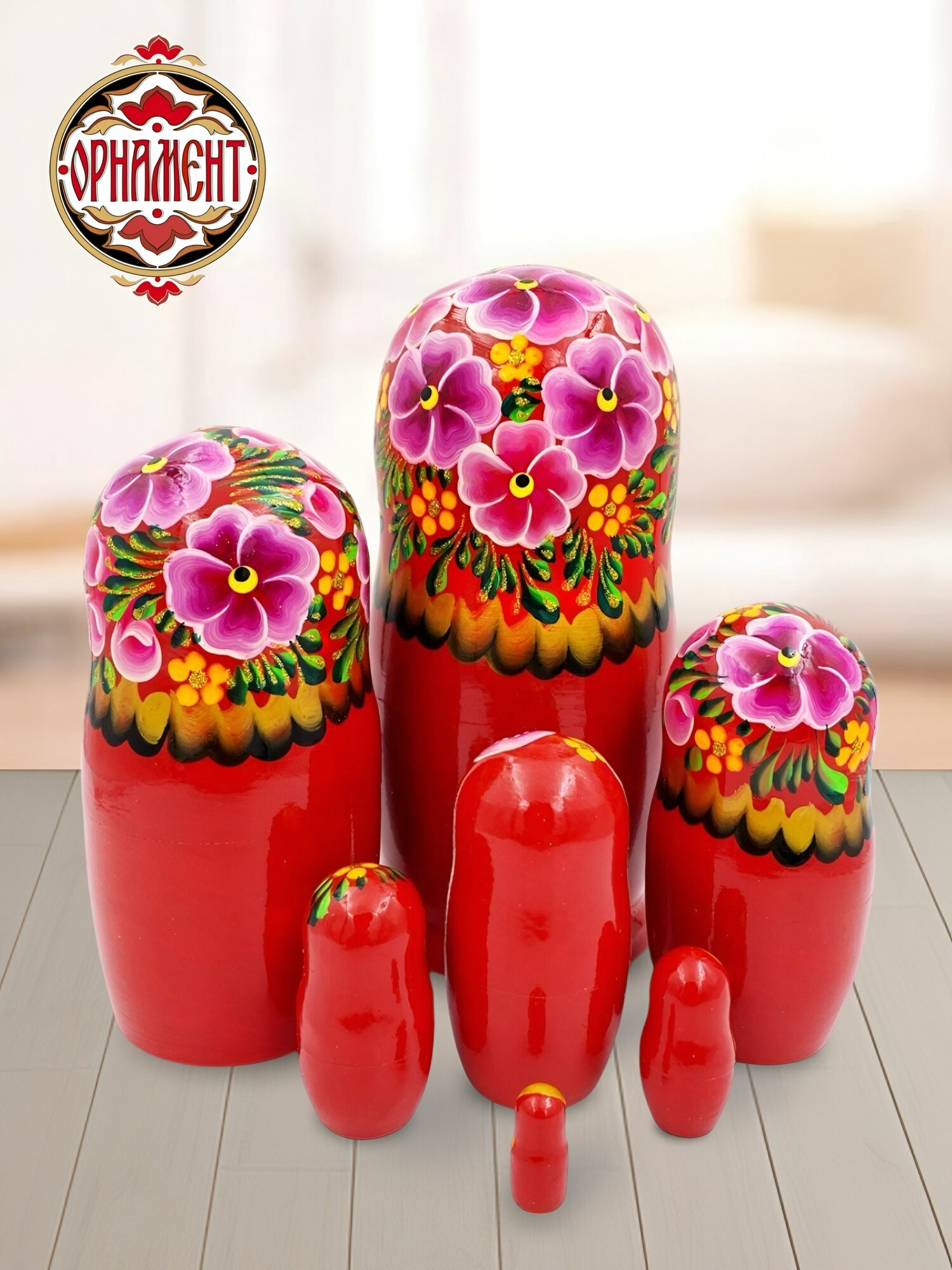 Купить Матрешка деревянная детская развивающая игрушка традиционная 7 мест 20 см Орнамент с доставкой по всей России.