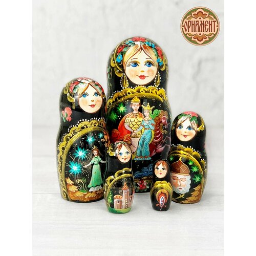 Авторская матрешка, разработка нашей мастерской "Орнамент". На матрёшке изображены сюжеты из русской сказки "Руслан и Людмила". Матрешка выполнена в ярких традиционных красных тонах. Качественная ручная роспись. Матрешка покрыта трехслойным глянцевым лаком. Хотите удивить своих друзей или родственников? Подарите им одну из наших деревянных красавиц! Матрёшки авторские ручной работы поэтому возможны незначительные отличия. Вы ищете уникальный и оригинальный подарок для своих близких и друзей? Мы предлагаем вам наши красивые и уникальные матрешки - классический русский сувенир, который понравится каждому. Наша коллекция матрешек включает в себя различные дизайны и размеры, чтобы удовлетворить любой вкус и бюджет. Мы используем только высококачественные материалы, чтобы наши матрешки были не только красивыми, но и долговечными. Матрешки - это не только прекрасный сувенир, но и отличный способ украсить ваш дом. Вы можете использовать их как элемент декора на полке, на столе или на комоде. Кроме того, наши матрешки могут стать прекрасным подарком на любой праздник - от дня рождения до свадьбы. Закажите сейчас наши матрешки и получите уникальный и оригинальный подарок, который будет радовать вас и ваших близких на протяжении многих лет. Приобретая наши матрешки, вы можете быть уверены, что получите продукт высокого качества. Мы тщательно следим за тем, чтобы каждый экземпляр был безупречным и отвечал нашим высоким стандартам. Мы гарантируем, что наши матрешки будут служить вам долгое время и будут радовать вас своей красотой и оригинальностью. Закажите наши матрешки прямо сейчас и получите возможность удивить своих близких уникальным подарком, который они будут помнить на долгие годы. Матрешек делают преимущественно из дерева мягкой породы - липы, это полностью ручная работа. Сушат бревна в течение нескольких лет, при хорошей вентиляции. Внимательно следят за качеством сушки древесины – она должна быть не сырой и не сухой. Начинают изготовление с самой последней неразборной фигурки. Последующие заготовки распиливают на две части, удаляют лишнюю древесину, чтобы элемент меньшего размера плотно держался внутри большого. Каждую матрешечку полируют, грунтуют, а затем раскрашивают. Далее детали покрывают масляным лаком и сушат. Чаще всего встречаются матрешки 5 мест и 10 мест. Сюжеты могут быть самые разнообразные - это и сказки, различные животные, политики, авангардная роспись, ну и конечно множество вариантов традиционных русских народных узоров. Матрёшка – отличная детская развивающая игрушка, которая приносит немало пользы для малыша. Как и сортер развивает мелкую моторику рук, ребенок учится сравнивать фигуры по высоте, размеру, цвету, объему, развивая мышление и логику. Выполненные из дерева фигурки помогают малышам познавать мир в тактильных и зрительных ощущениях. Расписная кукла будет полезным подарком для маленьких детей. Сейчас матрёшка – это известный на весь мир традиционный сувенир ручной работы из России. Такому подарку обрадуются не только гости из других городов, таких как Москва или Санкт-Петербург, русская деревянная матрешка может послужить как статуэтка и декор для дома на новоселье, подарочный набор для мальчиков и девочек, необычный подарок на Новый год, Рождество, Пасху, День рождения или Юбилей.