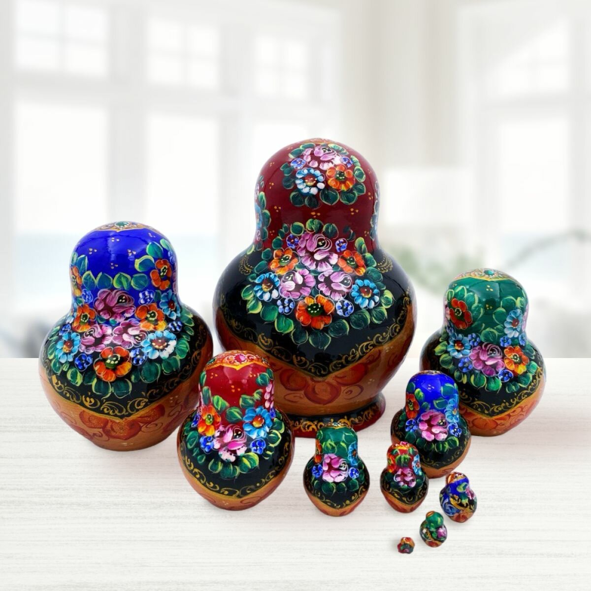 Матрешка деревянная детская традиционная 10 мест 14 см Орнамент