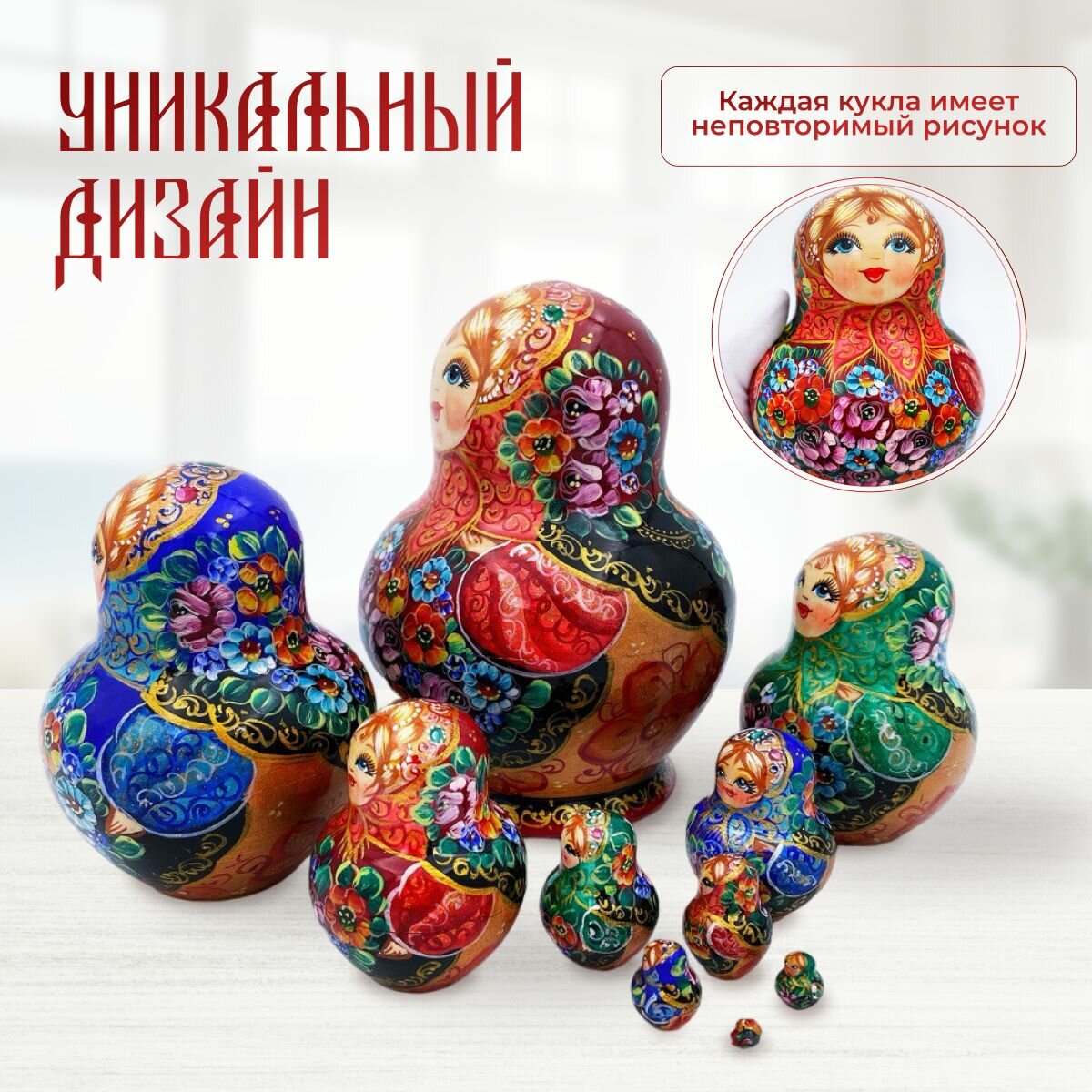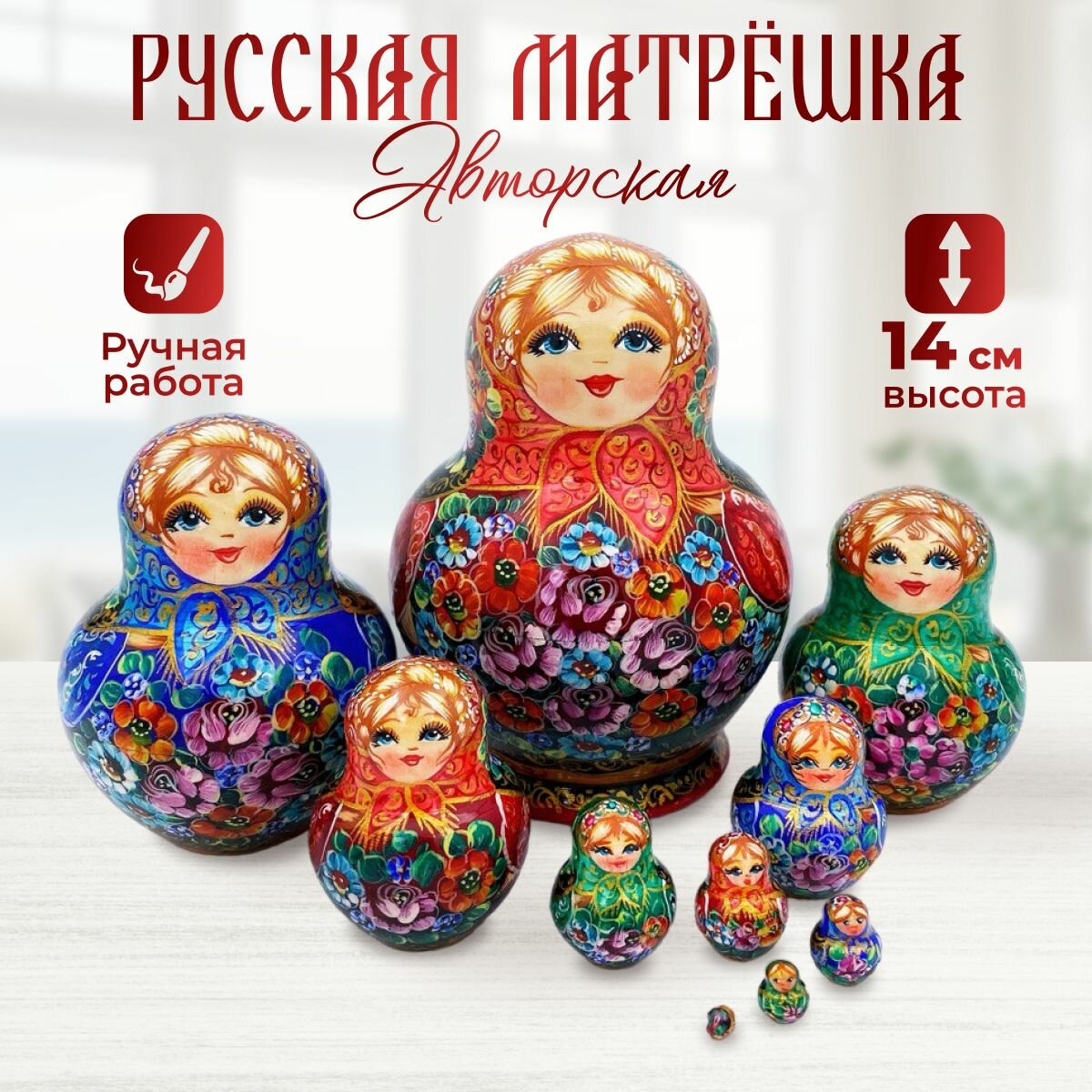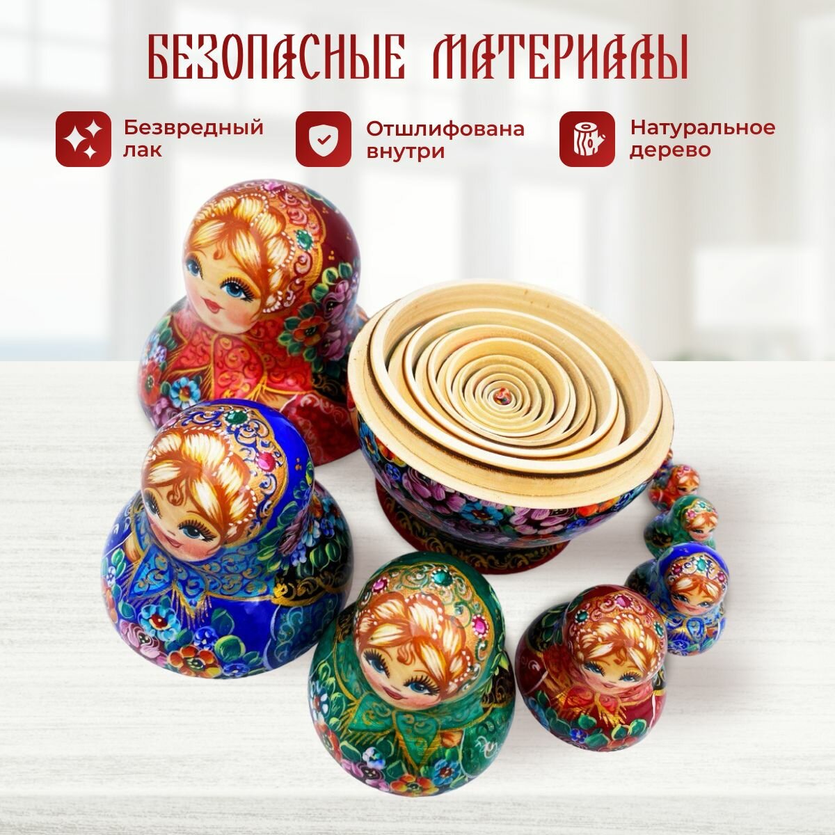 Купить Матрешка деревянная детская традиционная 10 мест 14 см Орнамент с доставкой по всей России.