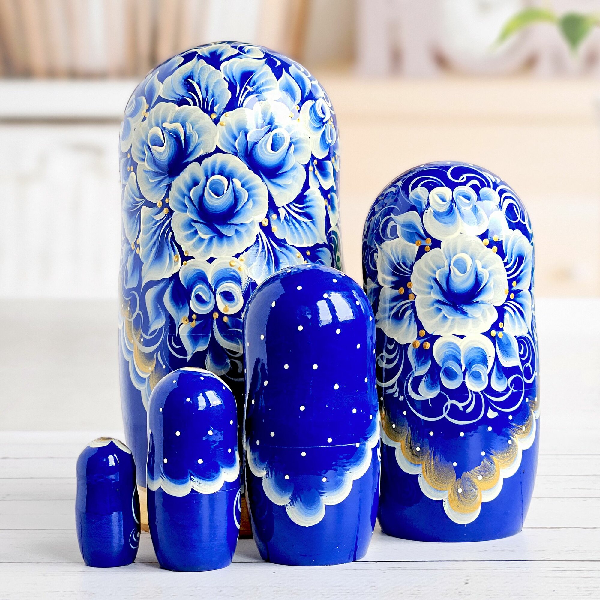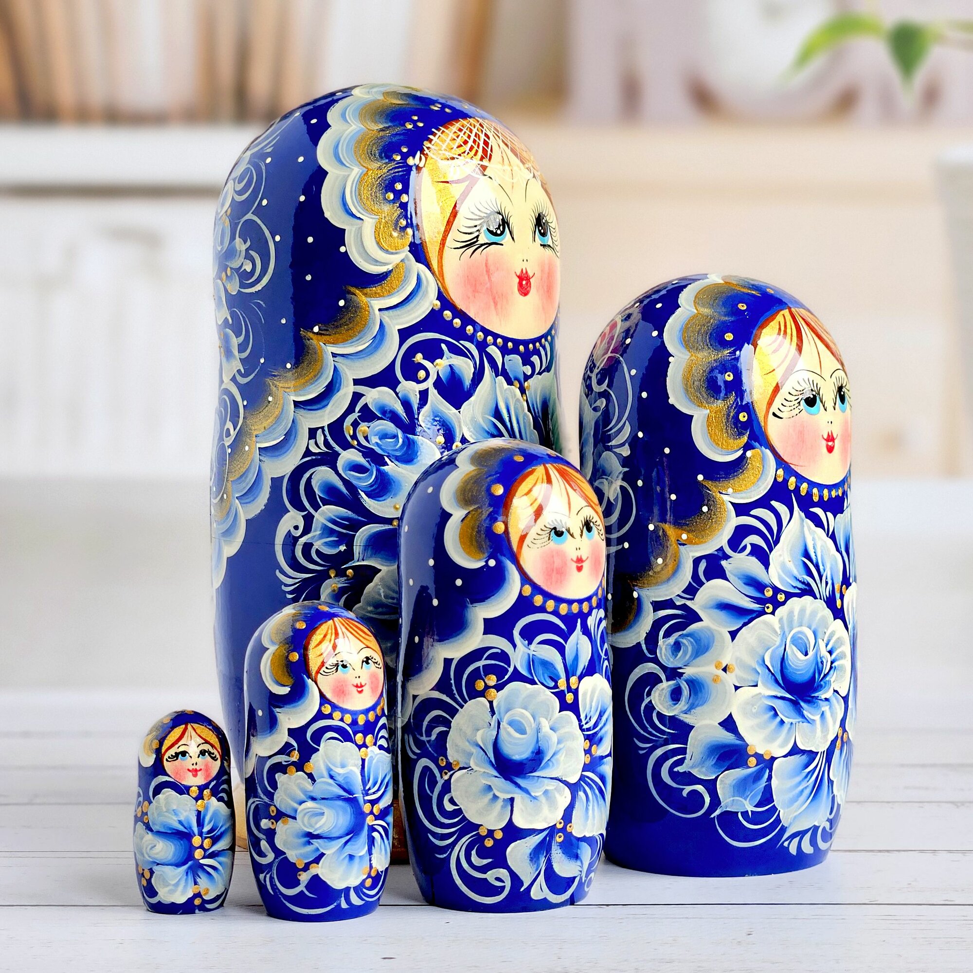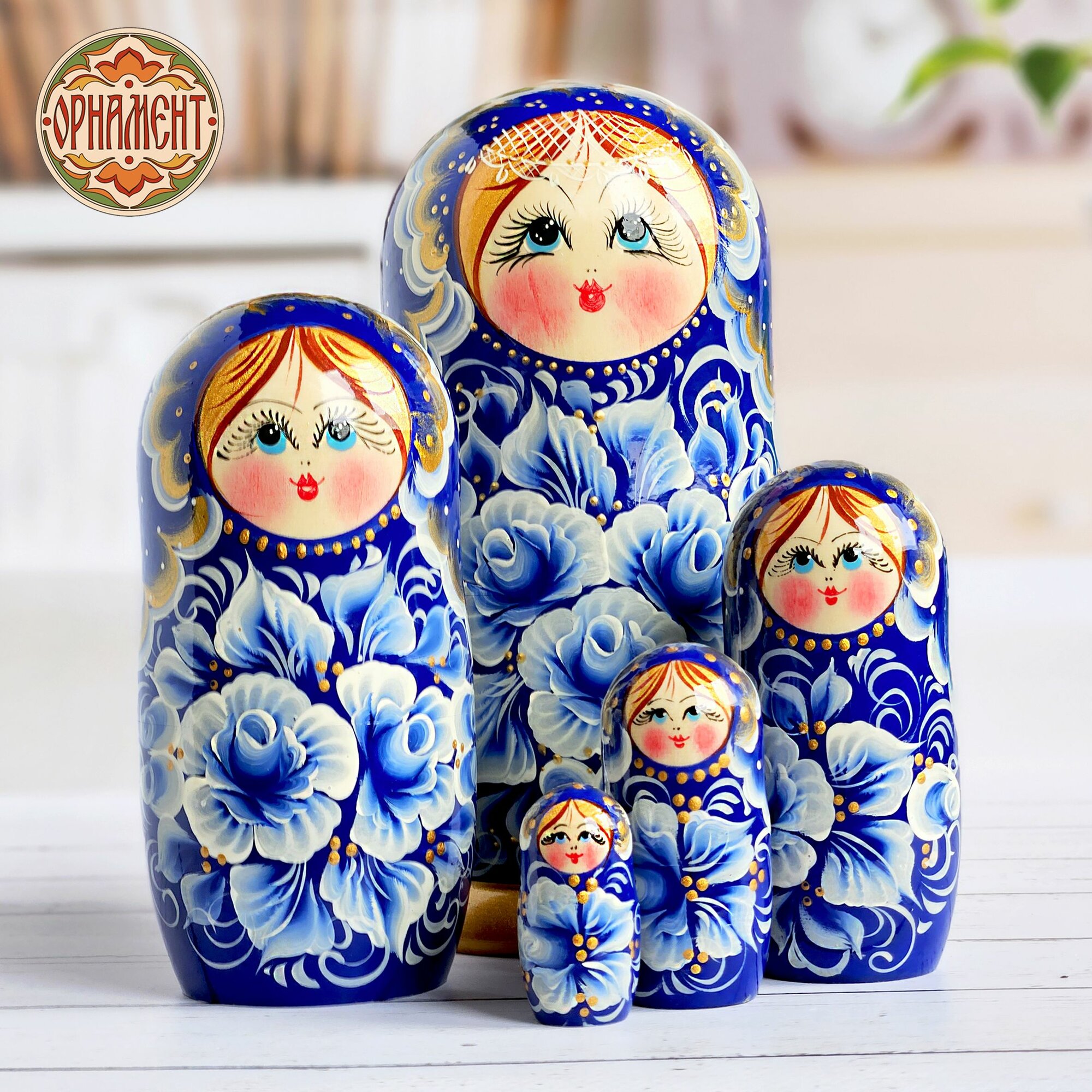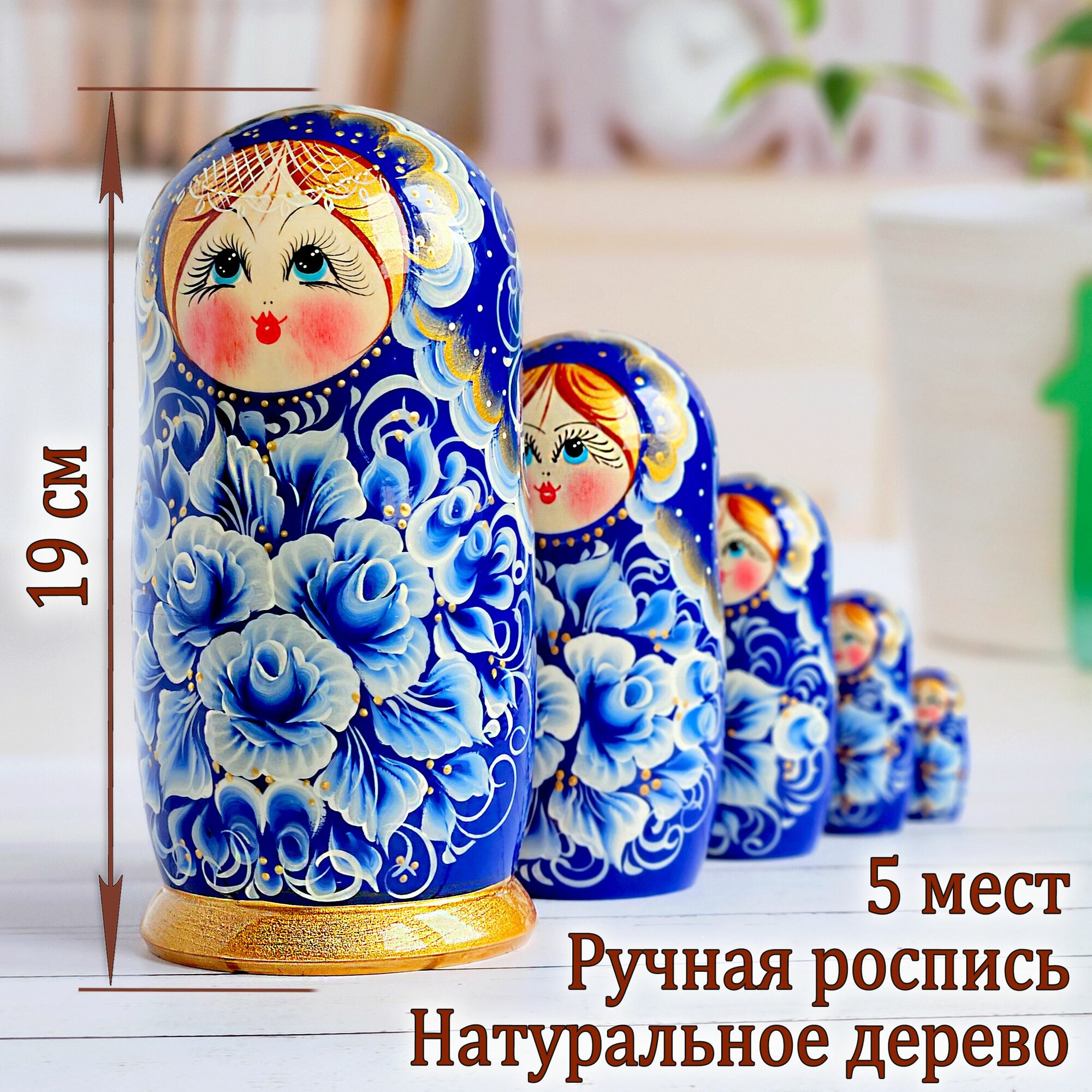 Купить Матрешка деревянная детская традиционная гжель развивающая игрушка 5 мест 18 см Орнамент с доставкой по всей России.