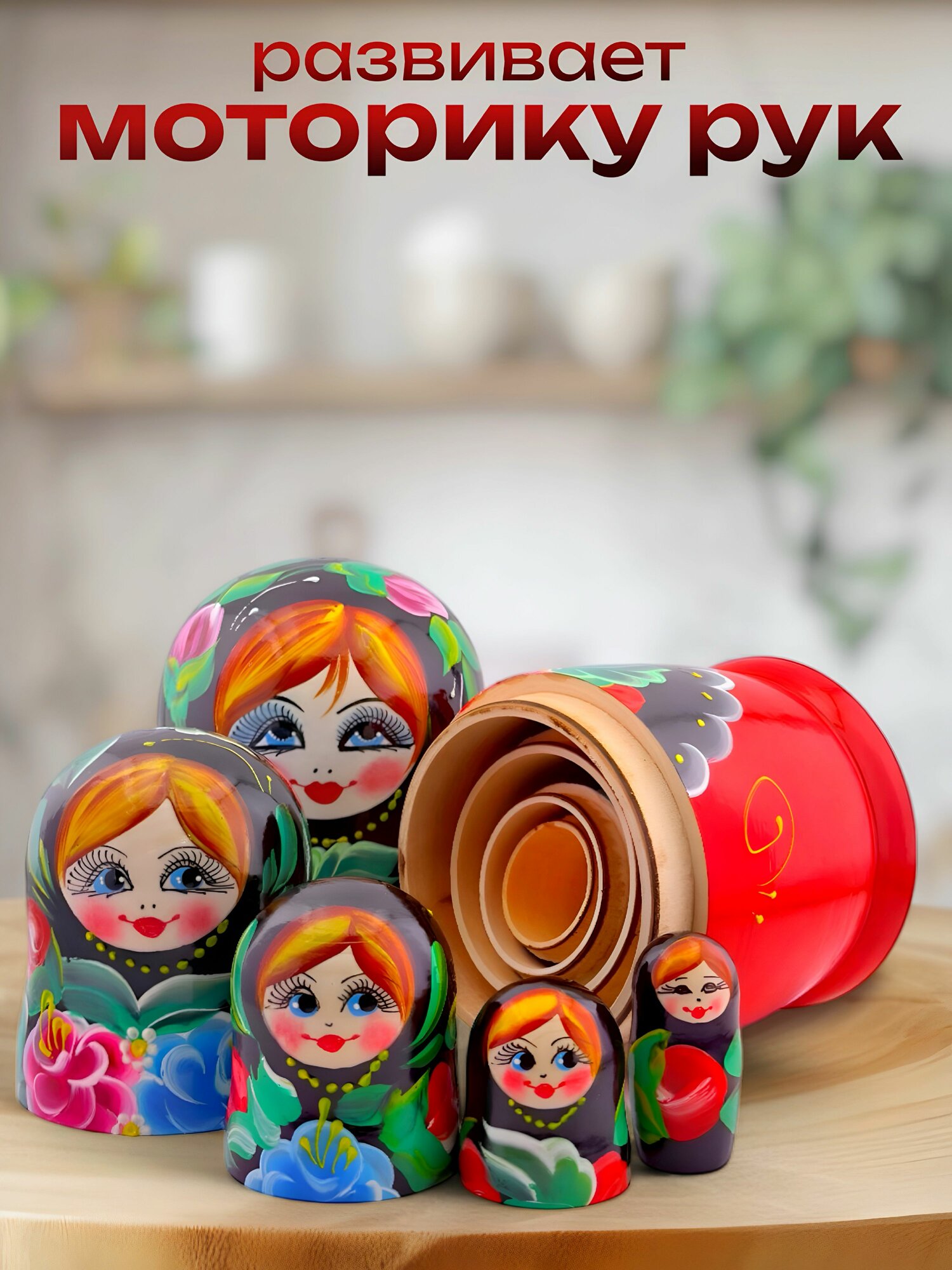 Купить Матрешка деревянная детская традиционная развивающая игрушка 5 мест 18 см Орнамент с доставкой по всей России.