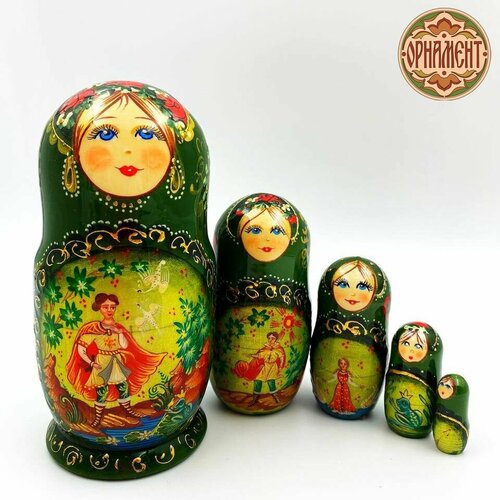 Матрешка авторская, разработка нашей мастерской "Орнамент". На матрёшке изображены сюжеты из русской сказки "Царевна-Лягушка". Матрешка ручной работы выполнена в бело-голубых тонах. Качественная роспись. Матрешка ручной работы покрыта трехслойным глянцевым лаком.