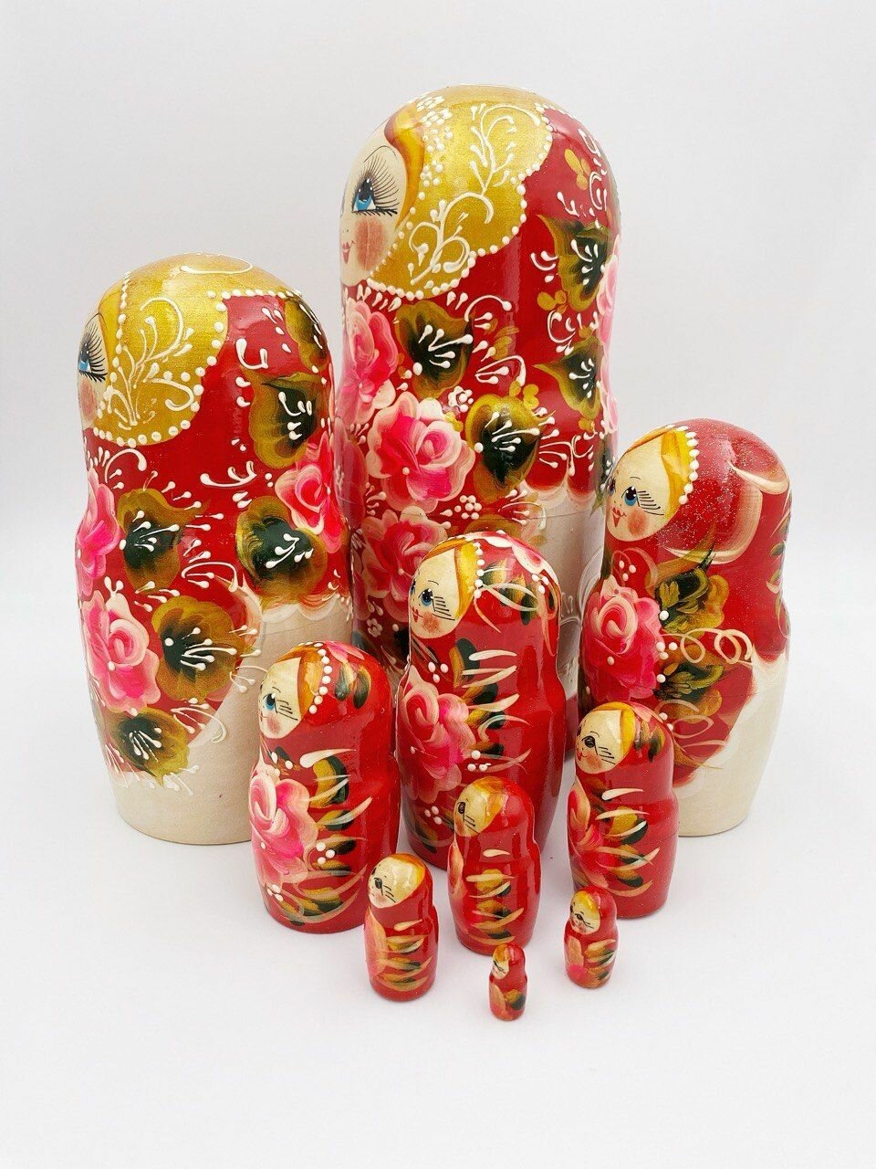 Купить Матрешка деревянная детская развивающая игрушка традиционная хохлома 10 мест 24,5 см Орнамент с доставкой по всей России.
