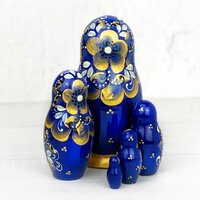 Авторская матрешка, разработка нашей мастерской "Орнамент". Выдержанный колорит, детали выполнены золотыми красками, сама роспись сделана в технике объемного письма, красивое лицо. Название коллекции - "Птица счастья". Матрешка ручной работы покрыта трехслойным глянцевым лаком.