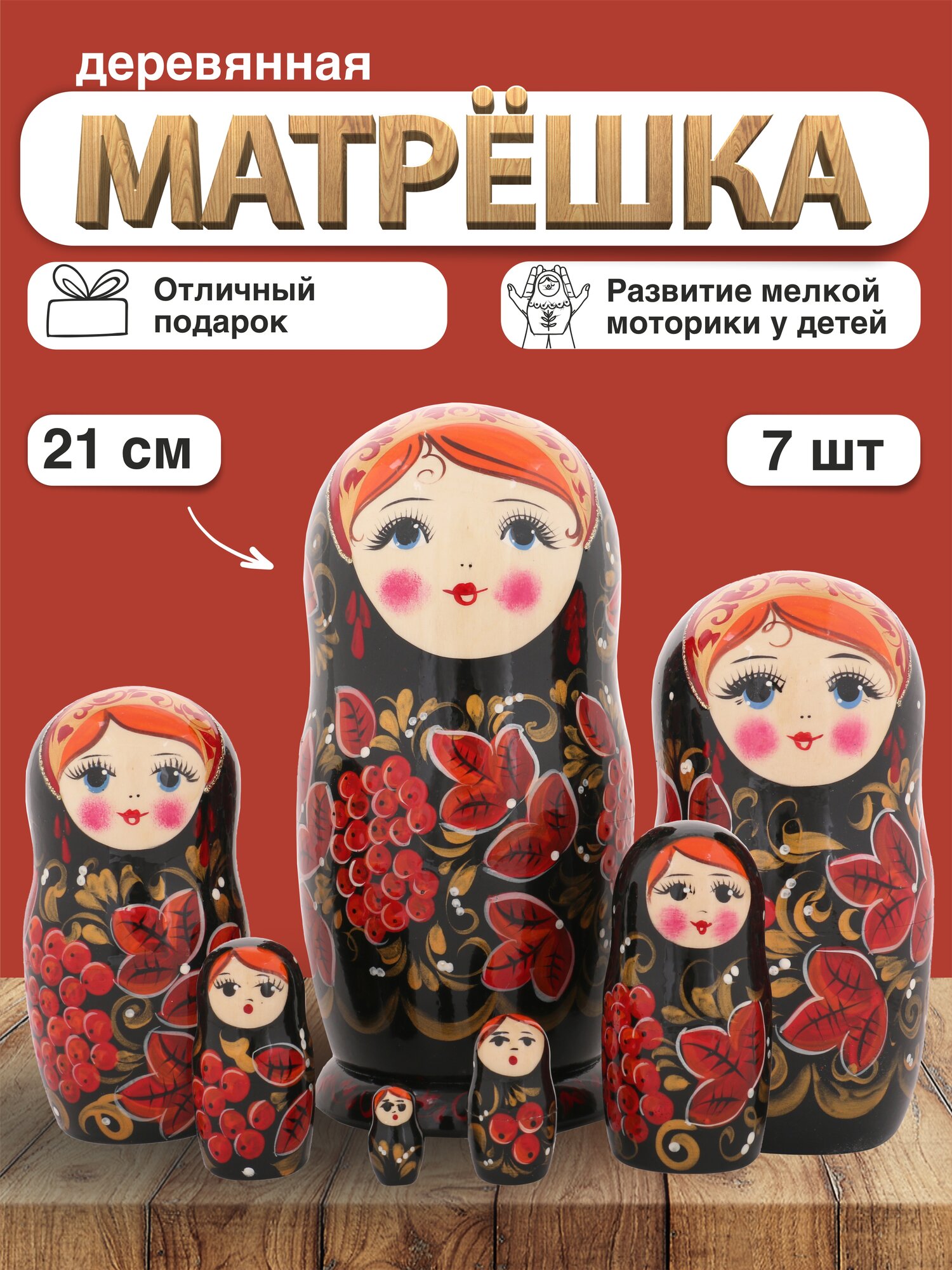 Купить Матрешка деревянная Рябинка черная, 7 мест, 21см / Развивающие детские игрушки с доставкой по всей России.