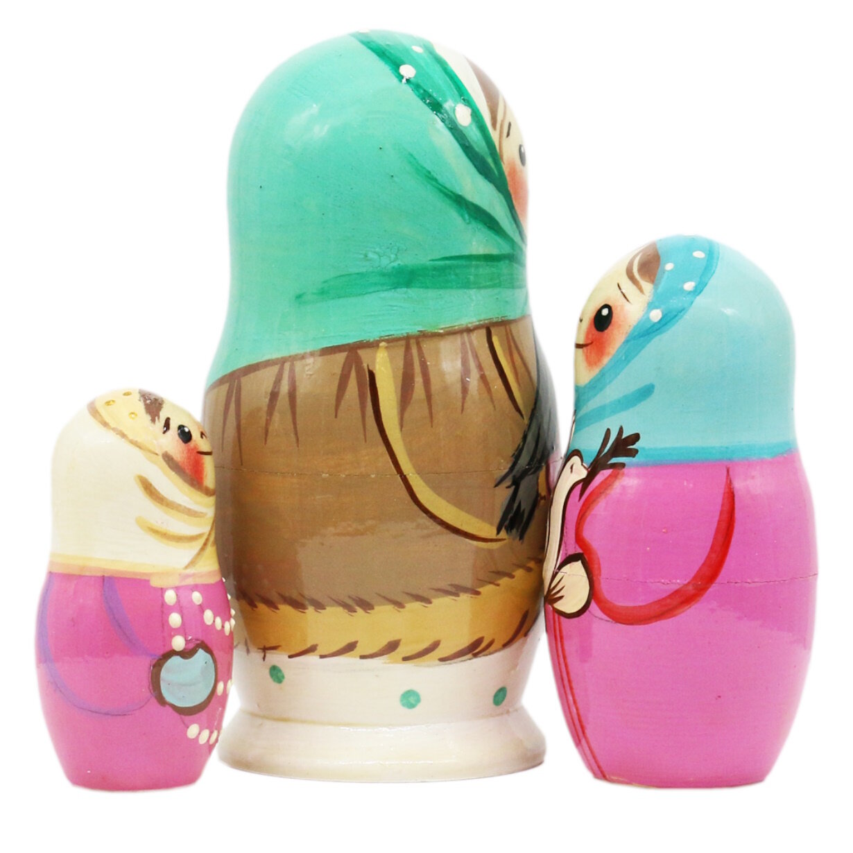 Матрешка состоит из трех кукол, что позволяет ребенку постепенно знакомиться с окружающим миром и развивать свои социальные навыки.