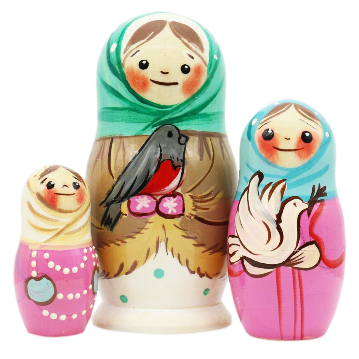 Матрешка "Девочка с птичкой" - это не просто игрушка, это произведение искусства, которое станет отличным подарком для любого ребенка.
