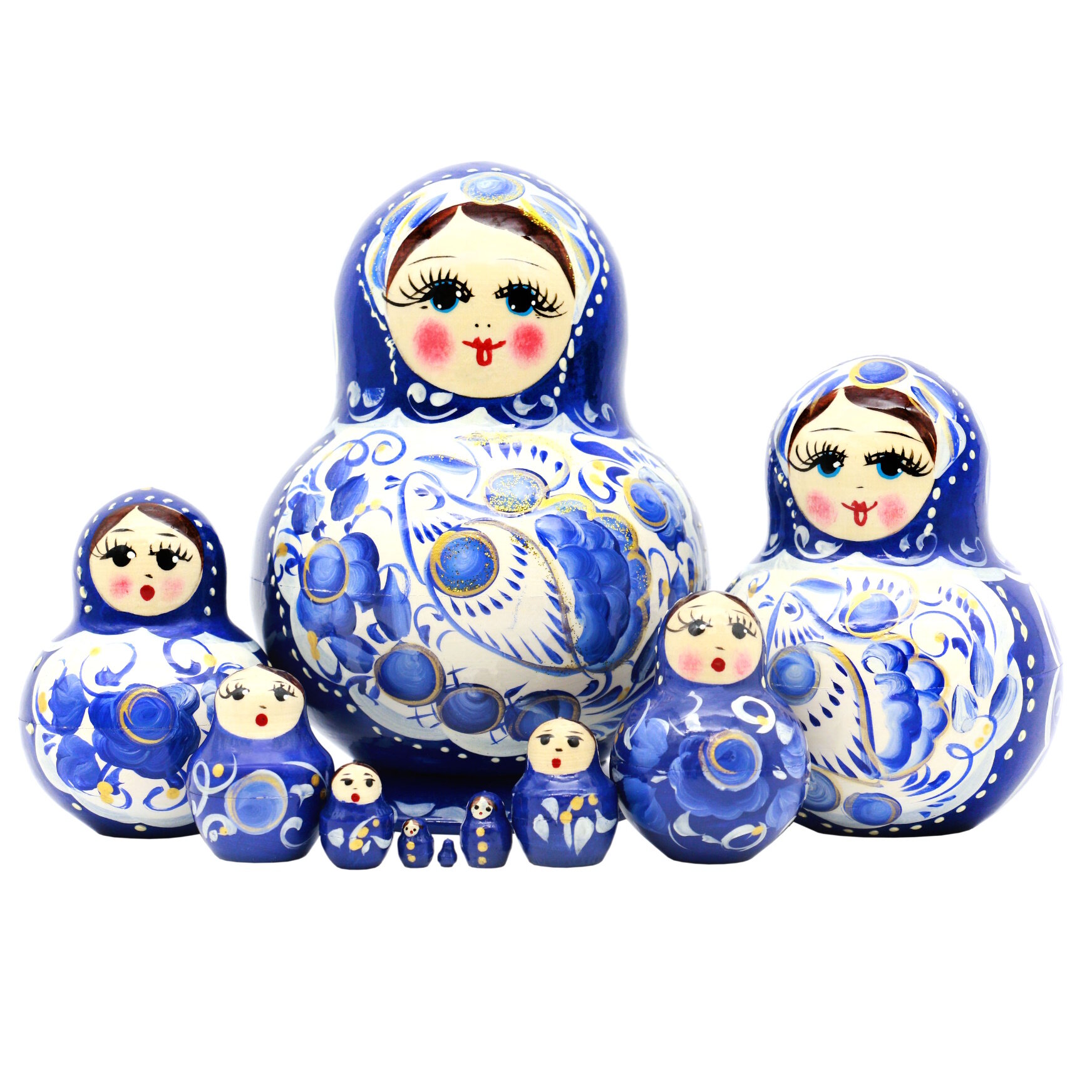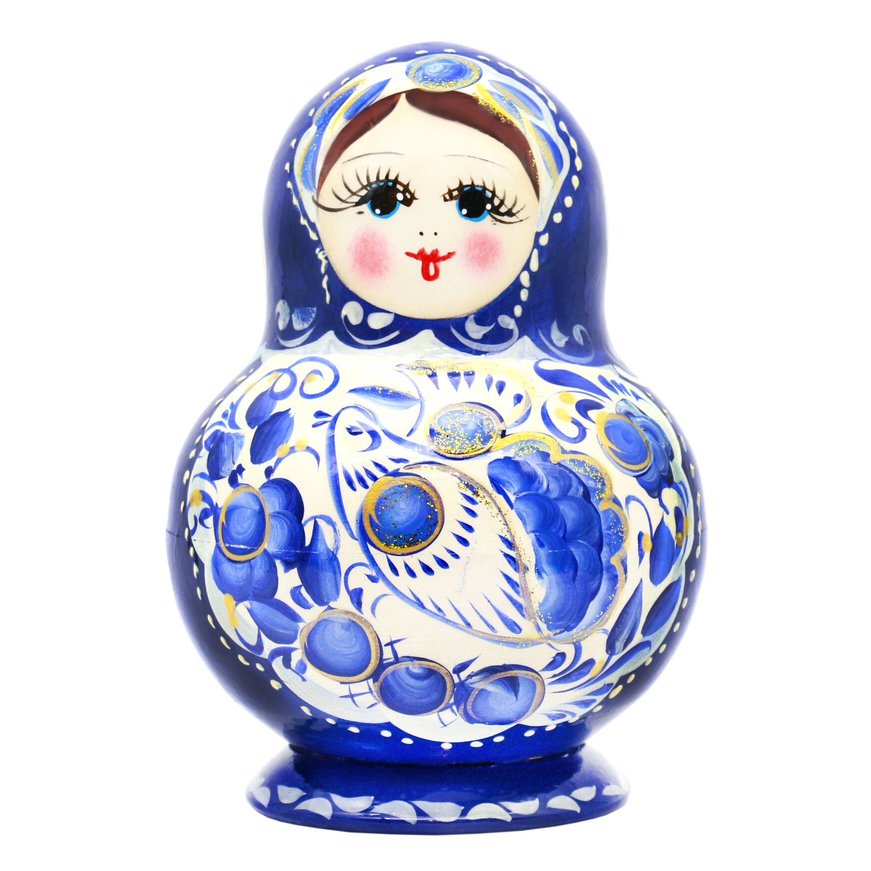 Купить Матрешка Гжельские узоры, фигурная, 10 мест, 15см (28019) с доставкой по всей России. Матрешка Гжельские узоры, фигурная, 10 мест, 15см (28019): сравнение цен, характеристики, фото, актуальное наличие и цены.