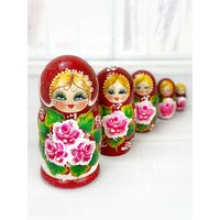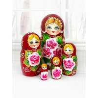 Матрешка расписана вручную в традиционном стиле. Яркая расцветка, милое личико и красивые цветы. Покрыта глянцевым лаком. Высота первой, самой большой матрешки - 15 см. Матрёшки ручной работы, поэтому могут быть незначительные изменения. Русский сувенир в подарок. br/>