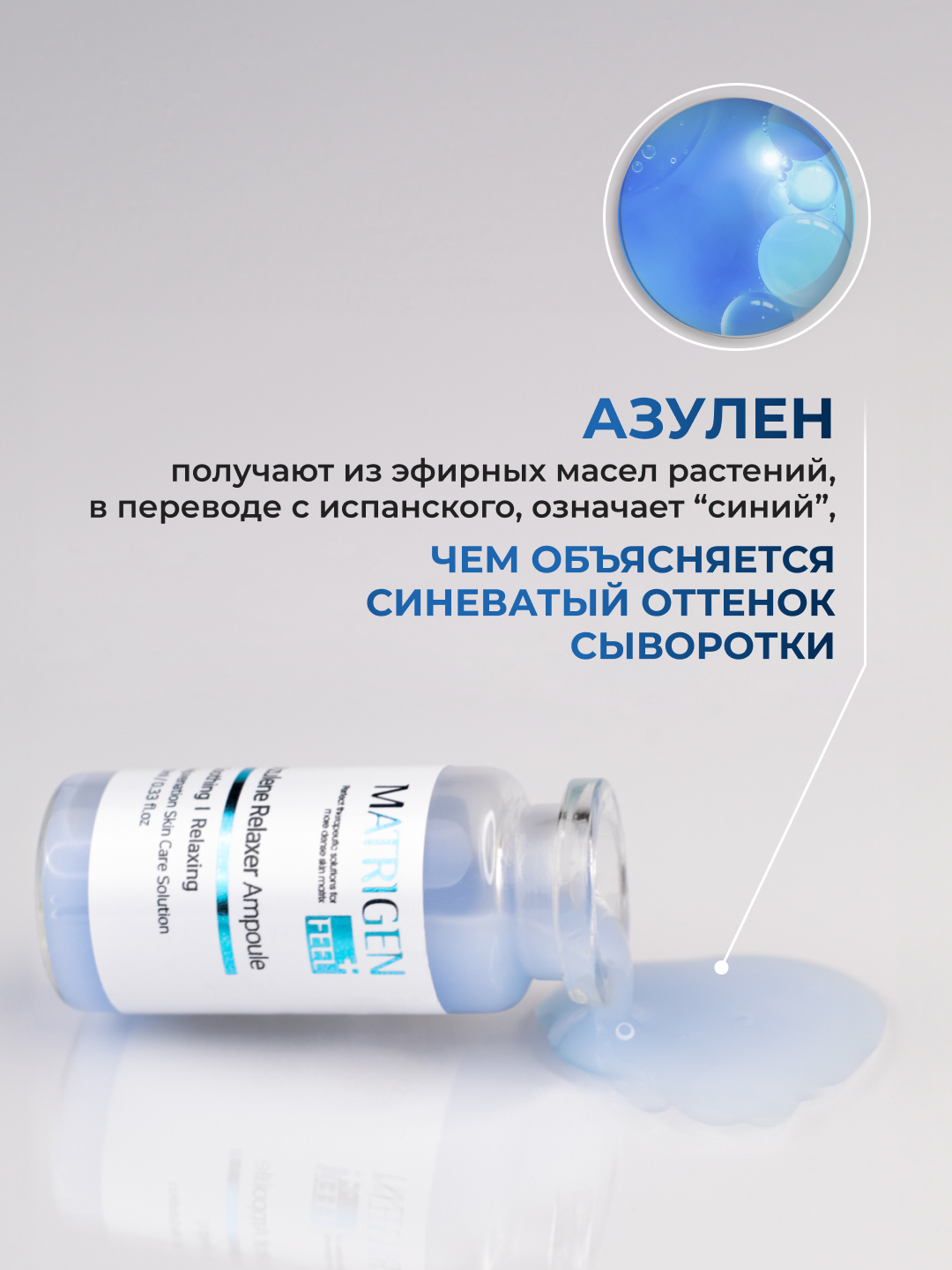 | Активный ингредиент | аденозин, азулен, аллантоин, арбутин, витамин B3 (ниацинамид), витамин C (аскорбиновая кислота), гиалуроновая кислота, глицерин, глутатион, керамиды, коллаген, мадекассосид, пантенол (провитамин B5), пептиды, сквалан, центелла азиатская |