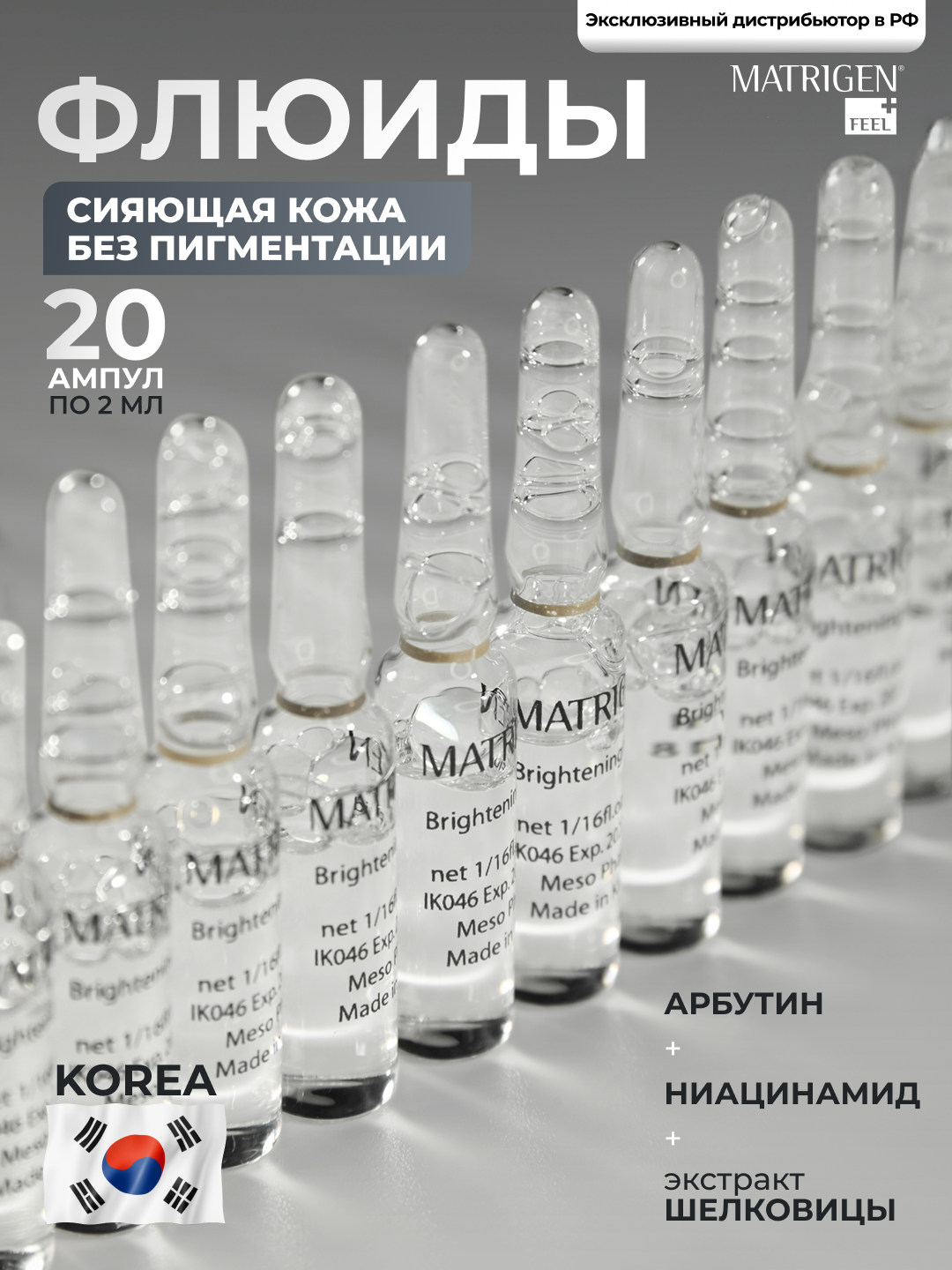 Matrigen Brightening Fluids Осветляющая сыворотка - флюид для лица / мезококтейль под мезороллер и дермапен, 20 ампул по 2 мм