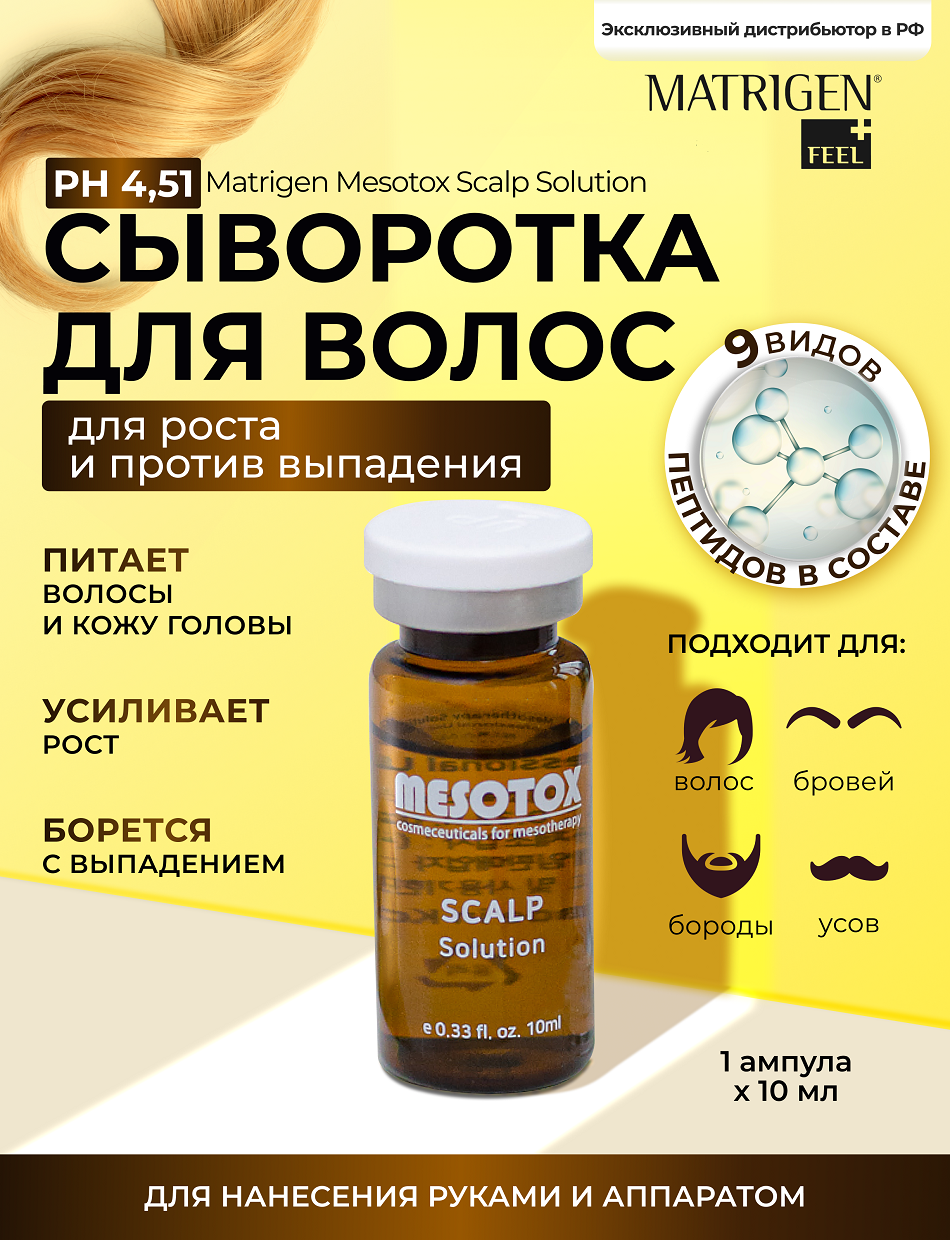 Matrigen Mesotox Scalp Solution Сыворотка для роста и против выпадения волос для мезороллера / под дермапен, 1 ампула х 10 мл: сравнение цен, характеристики, фото, актуальное наличие и цены.