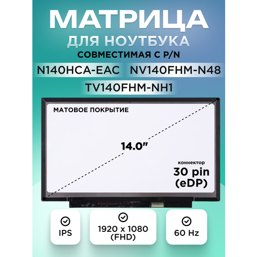 Матрица, дисплей, экран для ноутбука, ультрабука, нетбука подходит для HONOR MagicBook 14, MSI Modern 14 C12M, Lenovo ThinkPad E14, DEXP Aquilon C14, HP ProBook 440 G6, HP EliteBook 840 G5, Lenovo ThinkPad T460, HP ProBook 440 G7, Lenovo IdeaPad 3 14ADA05, HP ProBook 440 G8, Lenovo ThinkPad T460s, Lenovo Ideapad 330S-14IKB, Lenovo Ideapad S340-14API, Lenovo ThinkBook 14 G2 ITL, Lenovo ideapad 5 14ALC05, Acer SWIFT 3 SF314-41, Lenovo Ideapad Slim 1-14AST-05, Lenovo V14 G2 ITL, Lenovo ThinkPad E14 Gen 2, Acer SWIFT 3 SF314-54, Asus ZenBook 14 UX425EA, IRBIS NB244, Huawei MateBook D 14 (Nbl-WAQ9R), HP Pavilion 14-ce, IRBIS NB245, Acer SWIFT 3 SF314-58, Lenovo IdeaPad 3 14IIL05, Lenovo IdeaPad 530S-14ARR, HP Laptop 14s-dq2011ur, Lenovo ThinkBook 14 G2 ARE, Asus ExpertBook P2451FA, HP Laptop 14s-dq0029ur, Acer SWIFT 3 SF314-57, Acer SWIFT 3 SF314-42, HP Laptop 14s-fq0089ur, ASUS VivoBook 14 M413, Lenovo Yoga Slim 7 14ARE05, HP 14-df0000ur, Acer SWIFT 3 SF314-41G, HP 14-df0001ur, Lenovo IdeaPad 3 14ARE05, HP Laptop 14s-dq2000ur, Lenovo ThinkPad T460p, ASUS UX430UN, HP 14-ce0067ur, ASUS UX430UA, HP 14-ce1014ur, HP Laptop 14s-dq2012ur, HP Laptop 14s-dq3002ur, HP Laptop 14s-dq2010ur, Asus S433, HP Laptop 14s-dq1019ur, HP 14-ce1011ur, HP Laptop 14s-fq0120ur, Acer SWIFT 3 SF314-57G, Asus VivoBook Flip 14 TP412FA, HP Laptop 14s-dq0046ur, HP Laptop 14s-fq0084ur, HP Laptop 14s-fq0019ur, HP Laptop 14s-fq0088ur, HP Laptop 14s-fq0091ur, HP Laptop 14s-dq2008ur, HP Laptop 14s-dq2020ur, HP Laptop 14s-dq2005ur, HP Laptop 14s-dq1018ur, HP Laptop 14s-dq0042ur, HP Laptop 14s-dq1011ur, HP Laptop 14s-dq1031ur, HP Pavilion 14-df, HP Laptop 14s-dq2007ur, Acer SWIFT 3 SF314-54G, ASUS VivoBook 14 X412FA, HP 14-ce1002ur, HP Laptop 14s-dq0045ur, HP Laptop 14s-dq2014ur, HP Laptop 14s-dq2009ur, HP Laptop 14s-dq2030ur, ASUS VivoBook S14 M433IA, HONOR MagicBook (VLT-W50), HP Laptop 14s-fq0024ur, ASUS VivoBook 14 M413DA, ASUS VivoBook 14 X412DA, HP Laptop 14s-dq0047ur, HP Laptop 14s-dq1012ur, HP Laptop 14s-dq2006ur, HP Laptop 14s-dq3001ur, HP Laptop 14s-dq2013ur, HP Laptop 14s-dq3003ur, HP Laptop 14s-fq0077ur, Asus VivoBook 14 X413JA, HP Laptop 14s-dq0044ur, HP 14-ce2009ur, HP Laptop 14s-dq1034ur, Asus VivoBook Flip 14 TP412UA, HP Laptop 14s-dq2024ur, Lenovo THINKPAD X1 Carbon Gen 6 (2018), Asus Laptop 14 X409FA, ASUS VivoBook 14 X412UB, Asus VivoBook S14 S430FA, HP Laptop 14s-dq0030ur, HP Laptop 14s-dq2002ur, HP Laptop 14s-dq3004ur, HP Laptop 14s-dq3005ur, HP Laptop 14s-fq0031ur, HP Laptop 14s-fq1001ur, Asus VivoBook 14 K413EA, Asus VivoBook S14 S433FA, HP Laptop 14s-dq1002ur, HP Laptop 14s-dq2001ur, HP Laptop 14s-dq2019ur, HP Pavilion 14-bf036ur, ASUS VivoBook 14 X420UA, Asus VivoBook S14 S431FL, Asus VivoBook S14 S432FL, HP 14-ce2010ur, HP 14-ce2013ur, HP Laptop 14s-dq0020ur, HP Laptop 14s-dq0043ur, HP Laptop 14s-dq1000ur, HP Laptop 14s-dq1005ur, HP Laptop 14s-dq1013ur, HP Laptop 14s-dq1022ur, HP Laptop 14s-dq1040ur, HP Laptop 14s-dq2004ur, HP Laptop 14s-dq3000ur, HP Laptop 14s-fq0018ur, HP Laptop 14s-fq0061ur, HP Laptop 14s-fq0081ur, Acer SWIFT 1 SF114-32 (N20H2), Asus VivoBook 14 K413FA, ASUS VivoBook 14 K413FQ, ASUS VivoBook 14 X420FA, HP 14-ce1008ur, HP 14-ce2019ur, HP Laptop 14s-dq0001ur, HP Laptop 14s-dq0018ur, HP Laptop 14s-dq1009ur, HP Laptop 14s-dq1042ur, HP Laptop 14s-dq2003ur, HP Laptop 14s-dq2036ur и др.