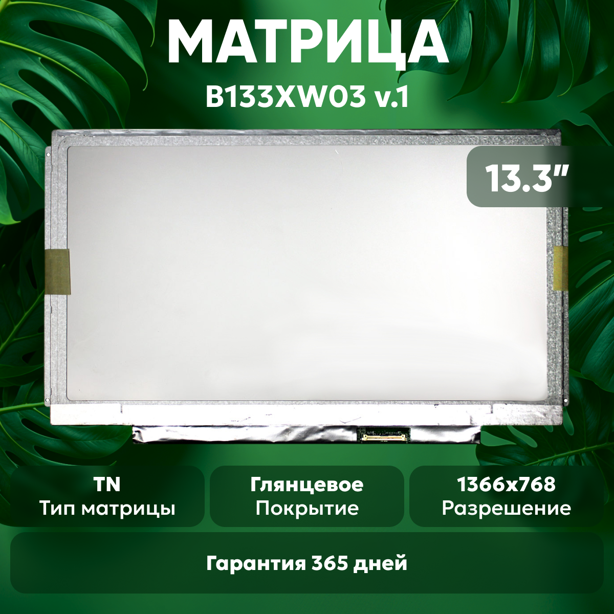Матрица (экран) для ноутбука B133XW03 V.1, 13.3″, 1366×768, Slim (тонкая), 40-pin, светодиодная (LED), матовая: сравнение цен, характеристики, фото, актуальное наличие и цены.