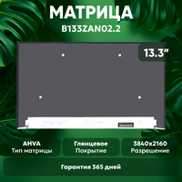 Матрица (экран) для ноутбука B133ZAN02.2, 13.3″, 3840×2160, Slim (тонкая), 40-pin, светодиодная (LED)