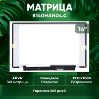 Матрица (экран) для ноутбука B140HAN04. C, 14", 1920x1080, Slim (тонкая), 40-pin, светодиодная (LED), глянцевая