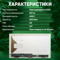 Матрица (экран) для ноутбука B154SW02 V.0, 15.4″, 1680×1050, Slim (тонкая), 40-pin, светодиодная (LED), глянцевая