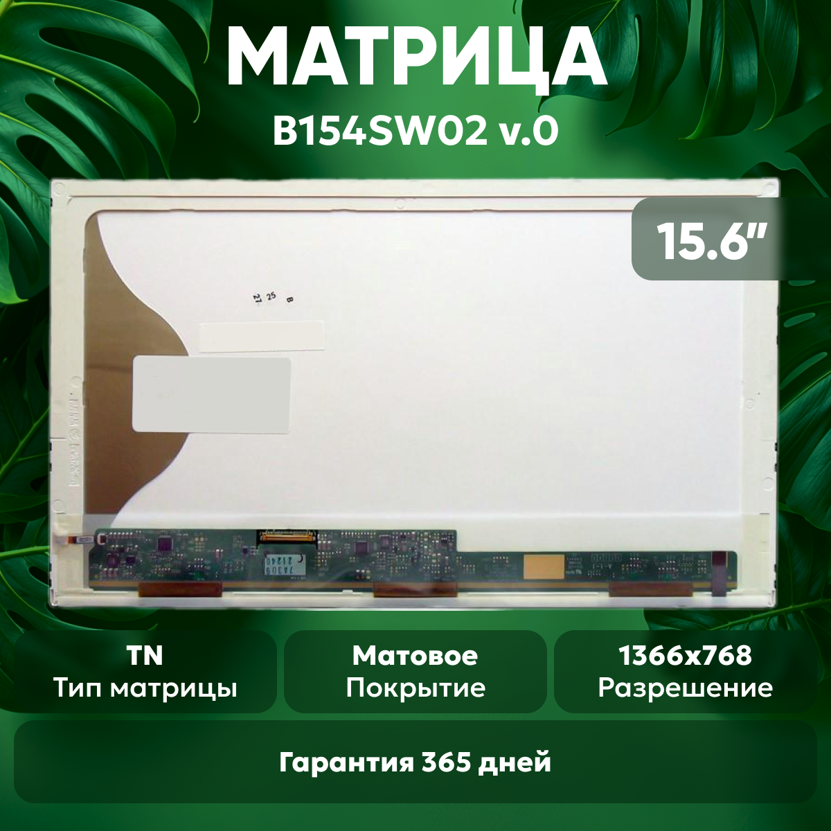 Купить Матрица (экран) для ноутбука B154SW02 V.0, 15.4″, 1680×1050, Slim (тонкая), 40-pin, светодиодная (LED), глянцевая с доставкой по всей России.