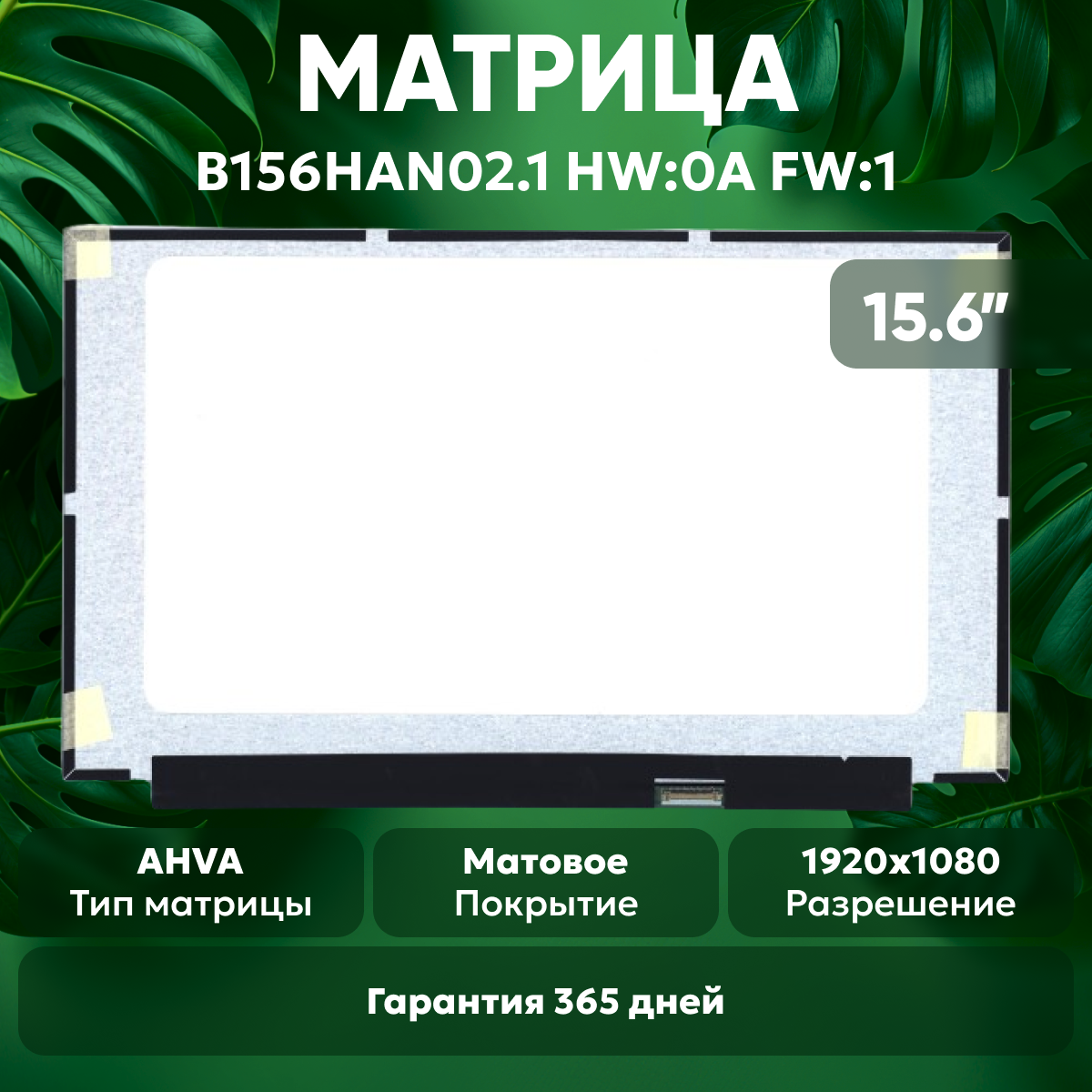 Купить Матрица (экран) для ноутбука B156HAN02.1, 15.6″, 1920×1080, 30-pin, светодиодная (LED), матовая с доставкой по всей России. Матрица (экран) для ноутбука B156HAN02.1, 15.6″, 1920×1080, 30-pin, светодиодная (LED), матовая: сравнение цен, характеристики, фото, актуальное наличие и цены.