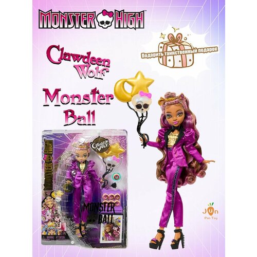 Кукла Клодин Вульф прибывает на Бал Монстров в когтисто крутом стиле! Ее потрясающий вечерний образ не останется незамеченной на жуткой танцплощадке Monster High. Жутко элегантный костюм этой оборотни сияет ярче полной луны! Атласная ткань с гламурным глянцевым блеском и стильные плечи с жесткой конструкцией придают дизайну драматичный шарм. Клодин Вульф охотится за высокой модой со своей сумочкой в форме полумесяца. Она открывается, чтобы внутри поместился ее череп-компакт! Ее мерцающие волосы украшает шипастый пучок на макушке, а асимметричные серьги, чокер с черной смокинговой бабочкой и туфли на платформе завершают ее лук. Дополнительные аксессуары для сторителлинга создают ужасно потрясающую атмосферу вечера: групповое селфи на память о ночи, жутковатый пучок воздушных шаров, стенка с пончиками и один пончик в придачу. Эта кукла Клодин Вульф из Monster High станет жутковатым дополнением к любой скелекции! Дети и фанаты могут найти и других девчонок-монстров с Бала Монстров для еще большего ужасно веселого времяпрепровождения.