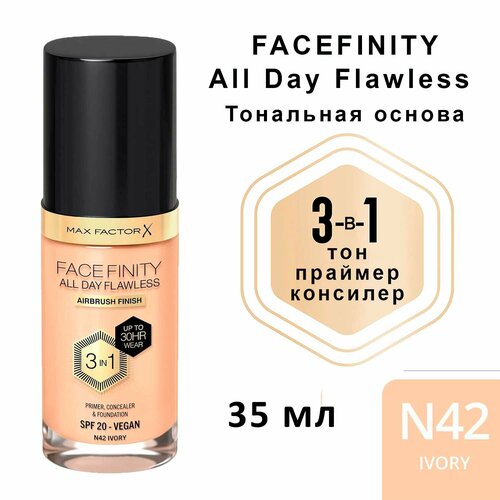 Купить Max Factor Тональная эмульсия Facefinity All Day Flawless 3-in-1, SPF 20, 30 мл/45 г, оттенок: 42 Ivory с доставкой по всей России. Max Factor Тональная эмульсия Facefinity All Day Flawless 3-in-1, SPF 20, 30 мл/45 г, оттенок: 42 Ivory: сравнение цен, характеристики, фото, актуальное наличие и цены.