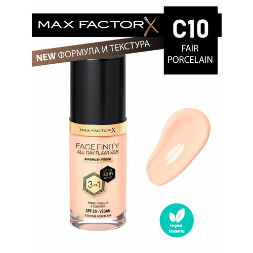 Купить Max Factor тональный крем FACEFINITY ALL DAY FLAWLESS 3 IN 1 VEGAN FOUNDATION C10 FAIR PORCELAIN с доставкой по всей России. Max Factor тональный крем FACEFINITY ALL DAY FLAWLESS 3 IN 1 VEGAN FOUNDATION C10 FAIR PORCELAIN: сравнение цен, характеристики, фото, актуальное наличие и цены.