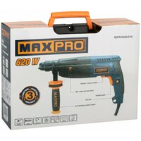 MAX-PRO Перфоратор монтажный 620 Вт; 0-1000об/мин; 2,5Дж; 3 режима; Д/Б/М-30/24/13; 2,8кг; SDS-PLUS; антивибрационная ручка; резиновые вставки; резино