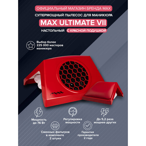 По-настоящему мощный MAX Ultimate VII. Оснащён уникальным вентилятором собственной разработки Новый суперэффективный пылесос для мастеров маникюра. Это потрясающе! Представьте, Вы только что закончили делать коррекцию ногтей клиенту, а стол чистый. Больше никаких масок, опила на мокрую салфетку и других ухищрений. Просто работаете в чистоте. Понравилось ощущение? Тогда выбор очевиден.