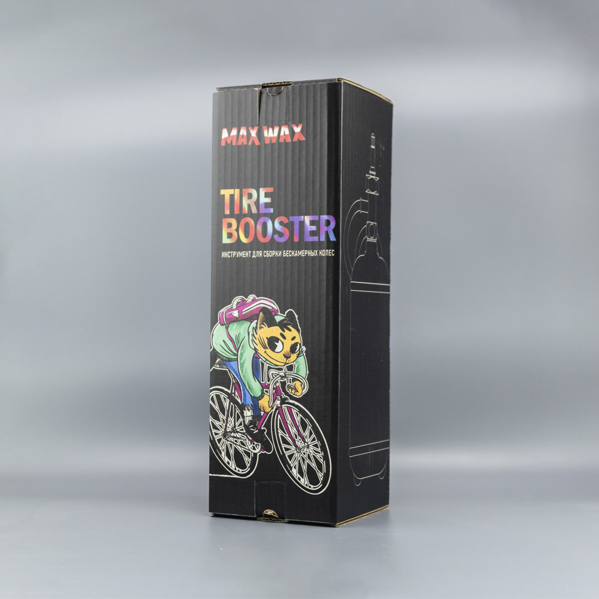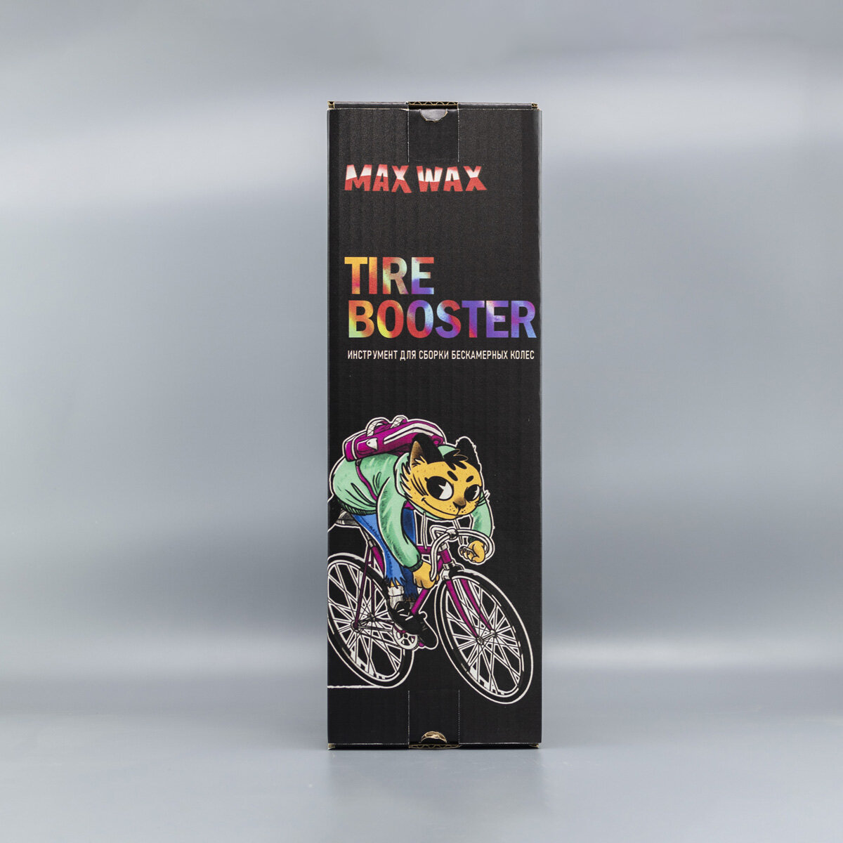 MAX WAX Booster - насос бустер для накачивания бескамерных колес . Незаменимая вещь при сборке бескамерных колес. Значительно облегчает накачивание бескамерного колеса. Объем: 2л. Идеально совместим с герметиком MAX WAX Tire Sealant. Инструкция по применению: 1. Закрыть кран, положение перпендикулярно шлангу. 2. Открутить защитный колпачок ниппеля на бустере. 3. Надеть конец насоса на ниппель сверху баллона. 4. Накачать от 4 до 9 бар в бустер. 5. Надеть шланг бустера на ниппель с открученым золотником, при желании затянуть сантехническим хомутом (можно просто придерживать шланг рукой). 6. Убедиться, что все установлено правильно. 7. Открыть шланг, после характерных хлопков покрышки - закрыть кран. 8. Снимая шланг, сразу же закрутить золотник в ниппель велосипедного колеса. 9. Убедиться, что покрышка села в замки колеса по всей площади, в случае необходимости - подкачать насосом. 10. Если покрышка не села в замки и не даёт подкачать насосом, накачать больше давление в бустер, повторить все заново.