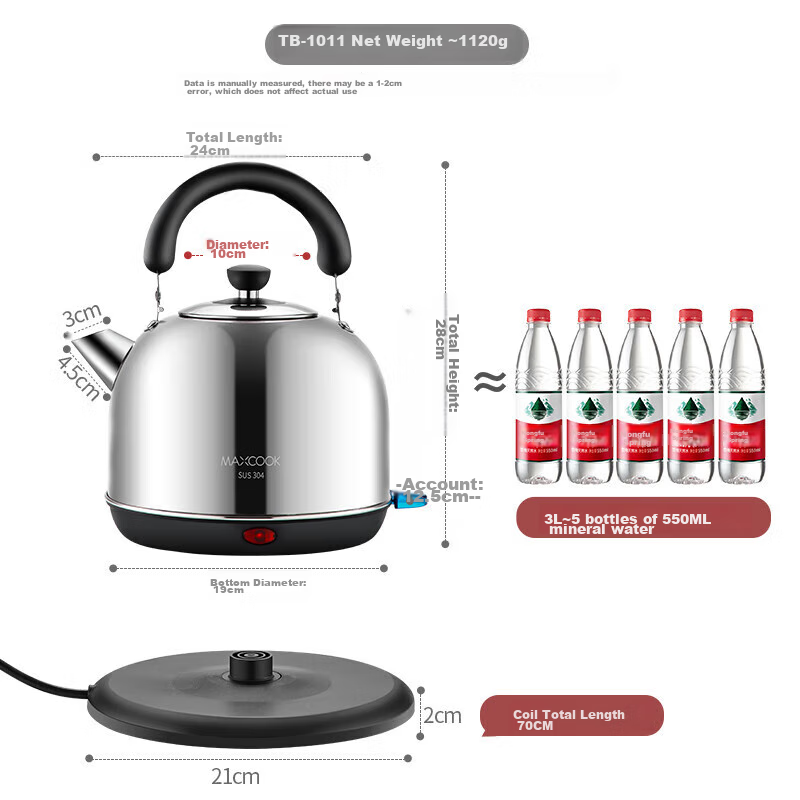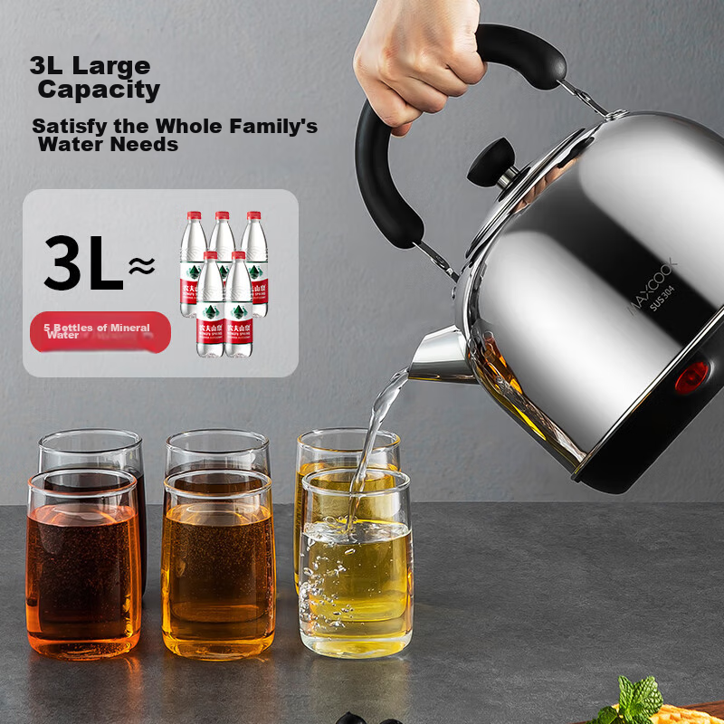 Maxcook Electric Kettle, 304 Stainless Steel Water Boiler, 3L Thickened, Auto Shut-Off, Anti-Scalding, TB-1011: сравнение цен, характеристики, фото, актуальное наличие и цены.
