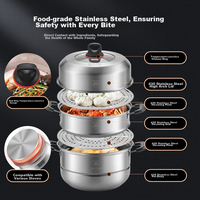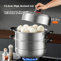 Maxcook Stainless Steel Steamer 32cm Three-layer Steamer Soup Pot with Thickened Bottom Universal for Gas and Induction Cooker MCZ047: сравнение цен, характеристики, фото, актуальное наличие и цены.