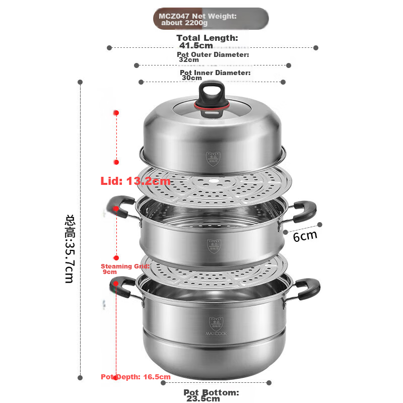 Купить Maxcook Stainless Steel Steamer 32cm Three-layer Steamer Soup Pot with Thickened Bottom Universal for Gas and Induction Cooker MCZ047 с доставкой по всей России.