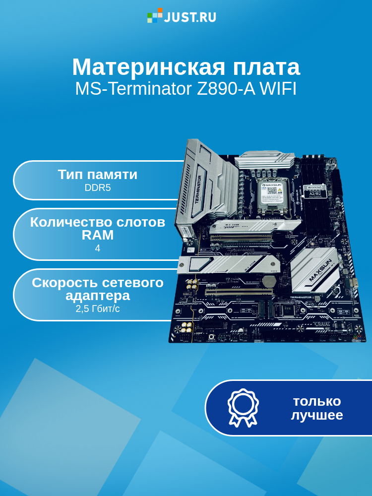 MAXSUN MS-Terminator Z890-A WIFI, LGA1851, Z890, 4*DDR5, 4*SATA3, 4*M.2, USB 3.2, USB 2.0, Type-C, 4*PCIEx16, HDMI+DP, ATX: сравнение цен, характеристики, фото, актуальное наличие и цены.