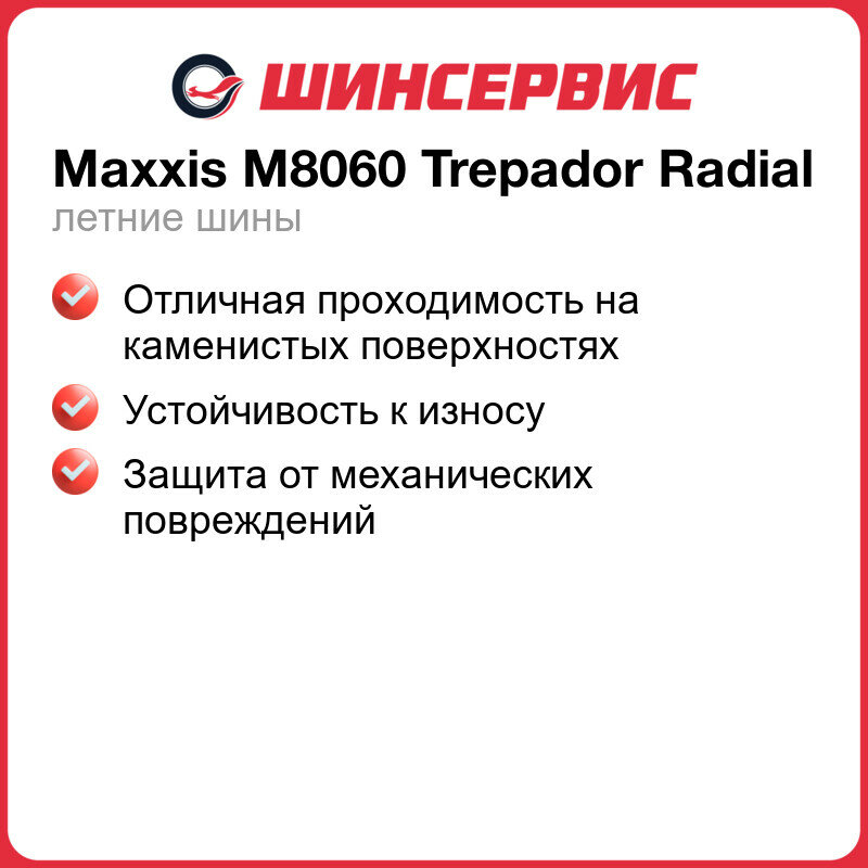 Диагональная. Максимальная нагрузка на колесо 1450 кг. Максимальная скорость 110 км/ч. Для подготовленных внедорожников. Вес колеса 33.6 кг