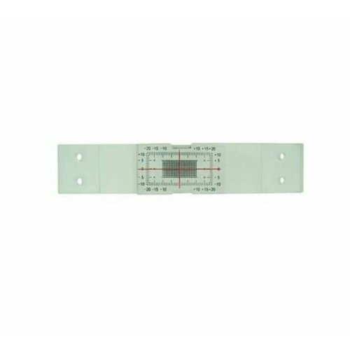 Деформационная шкала представляет собой 2 пластиковые пластины, на одну из которых нанесена миллиметровая сетка и шкала отсчётов, а на вторую контрольное перекрестие.