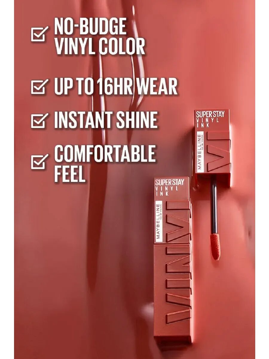 Maybelline New York Помада для губ Super Stay Vinyl Ink, 100 Charmed, жидкая стойкая сияющая, 4.2 мл