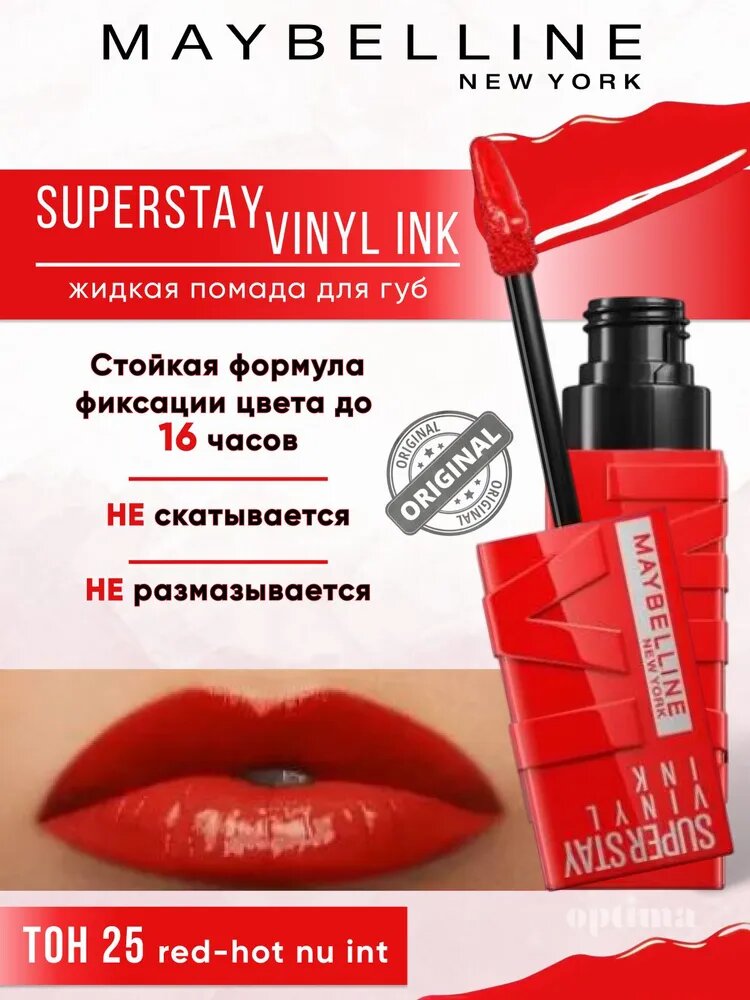Maybelline New York Помада для губ Super Stay Vinyl Ink, 25 Red-Hot, жидкая стойкая сияющая, 4.2 мл: сравнение цен, характеристики, фото, актуальное наличие и цены.