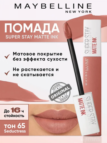 Maybelline New York Помада для губ Super Stay Matte Ink, тон 65 Seductress, жидкая суперстойкая матовая, 5 мл: сравнение цен, характеристики, фото, актуальное наличие и цены.