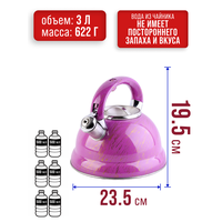 Чайник со свистком 3 литра MAYER&BOCH из нержавеющей стали - это идеальное решение для вашей кухни. Его высокое качество обеспечивает надежность и долговечность. Благодаря своей функциональности и эстетичному дизайну, он станет неотъемлемой частью вашего быта. Свисток на носике контролирует процесс кипячения, а широкое дно равномерно распределяет тепло. Эргономичная ручка из термостойкого пластика обеспечивает удобство использования. На ручке расположена небольшая кнопка для удобного открывания носика. Наслаждайтесь натуральным вкусом и ароматом напитков с посудой MAYER&BOCH каждый день. Чайник из нержавеющей стали MAYER&BOCH объемом 3 литра станет незаменимым помощником на вашей кухне. Изделие не только обладает превосходными техническими характеристиками, но и отличается стильным дизайном. Чайник из нержавейки не подвержен коррозии и не впитывает запахи, что позволяет сохранять насыщенный вкус и аромат вашего любимого напитка. Чайник со свистком для газовой плиты из нержавейки 3 л идеально подходит для быстрого и равномерного нагрева воды. Свисток на носике сигнализирует о готовности воды, что позволяет вам контролировать процесс кипячения. Чайник для плиты 3 л нержавейка со свистком - это универсальный выбор для любой кухни. Он подходит для использования на всех типах плит, включая индукционные. Для содержания в идеальном состоянии, можно мыть в посудомоечной машине. Эта посуда сочетает в себе функциональность, качество и стиль, делая процесс приготовления чая максимально удобным и приятным. Элегантный дизайн и красивое оформление позволит сделать его отличным подарком на любой праздник.