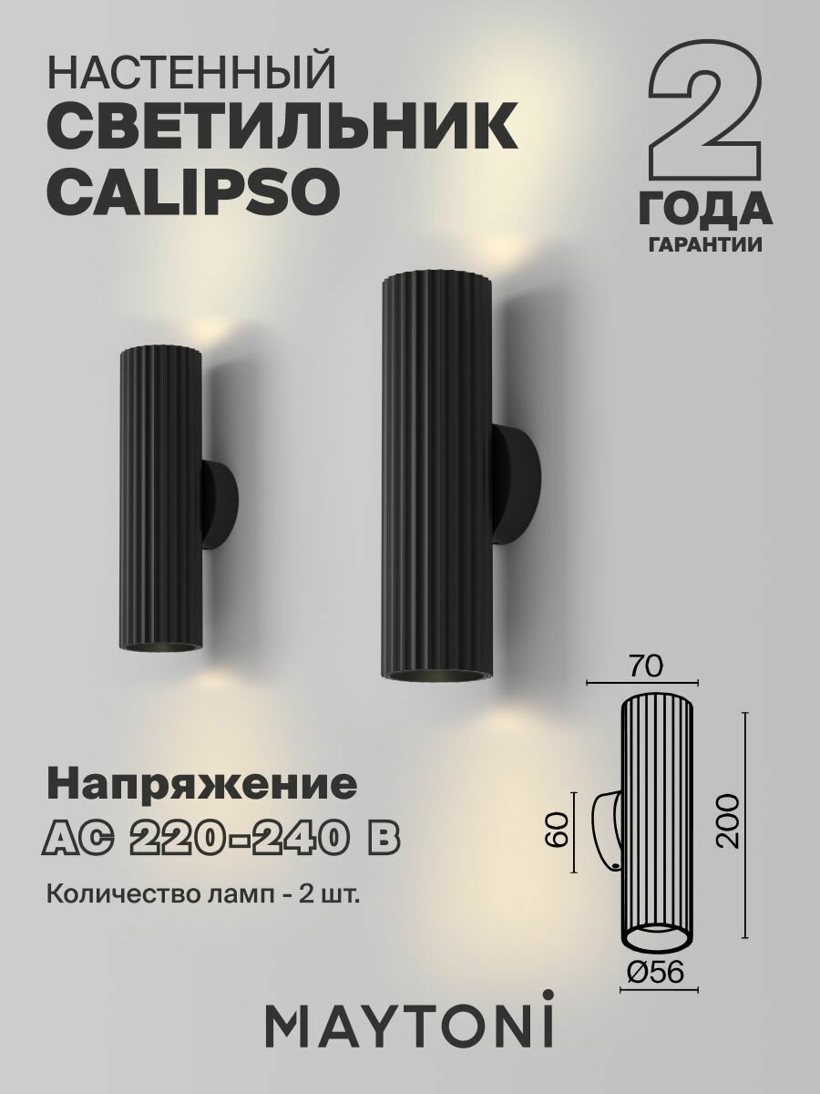 Светильник настенный бра черный Maytoni Technical Calipso C106WL-02-GU10-B: сравнение цен, характеристики, фото, актуальное наличие и цены.