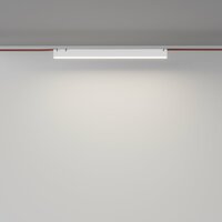 Способ крепления: на трек. Дизайн и форма плафона прямоугольный. Направление плафонов вниз. Цоколь LED. Вид ламп: светодиодная. Количество ламп 1 шт. Мощность одной лампы составляет 24 Вт. Общая мощность 24 Вт. Поток света 1350 Люмен.