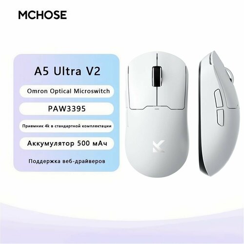 Купить MCHOSE Игровая мышь беспроводная A5 V2 Ultra(Оснащен приемником 4K), White=v= с доставкой по всей России.