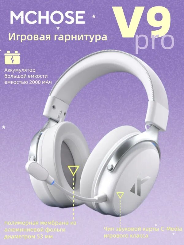 MCHOSE V9 Pro Игровые Наушники Беспроводные 2.4g С Низкой Задержкой, Батареей 2000 МАч И Микрофоном: сравнение цен, характеристики, фото, актуальное наличие и цены.